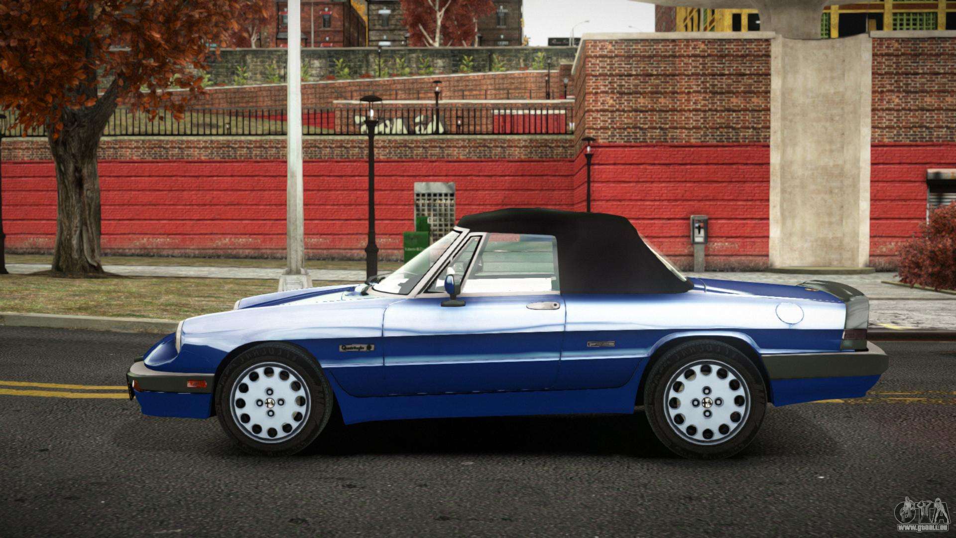 Ne vous privez pas de ce plaisir, suivez les liens ci-dessous et téléchargez le mod Alfa Romeo Spider 115 Qodkaq pour GTA 4. L’installation automatique en deux clics, par défaut, remplacera le feutre. Et aussi, grâce à notre installateur, vous pouvez choisir quelle voiture de jeu standard vous souhaitez améliorer.