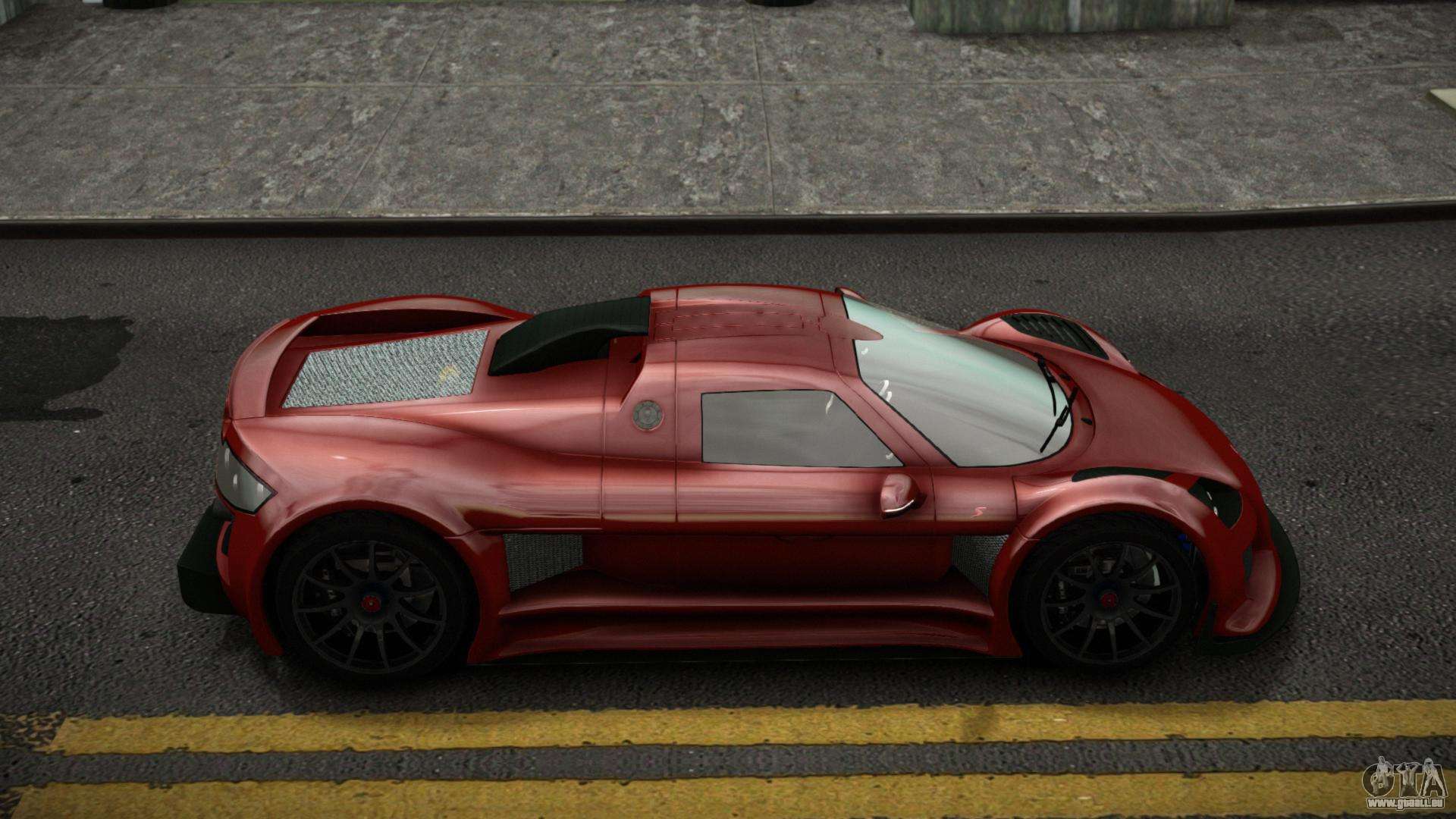 Vous pouvez apprécier tout le charme de la voiture en téléchargeant le mod Gumpert Apollo Gefaien pour GTA 4 en cliquant sur les liens ci-dessous. Le mod s’installe automatiquement en deux clics, par défaut il remplace Feltzer, ou choisissez n’importe quel autre véhicule du jeu que vous souhaitez transformer.