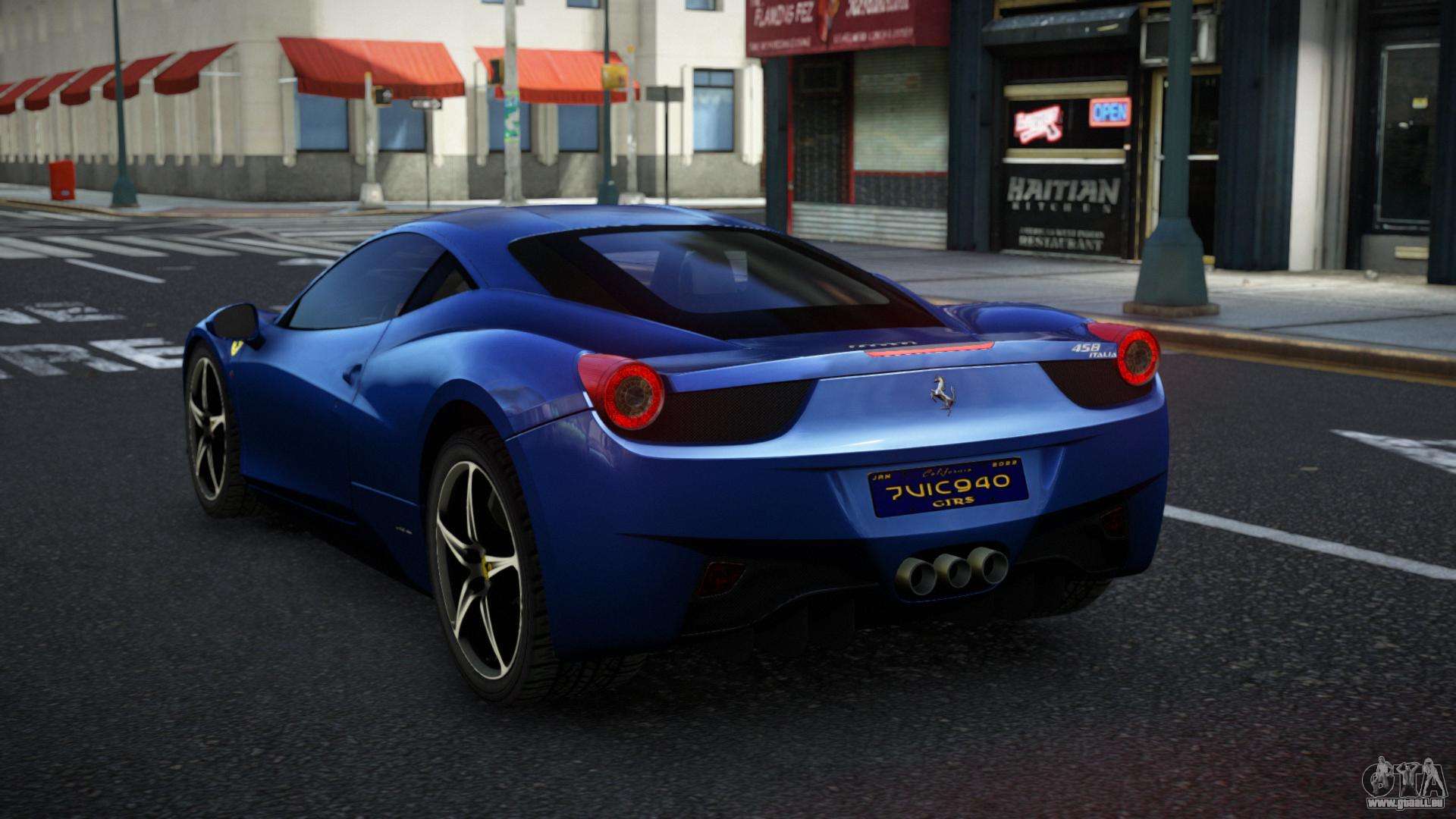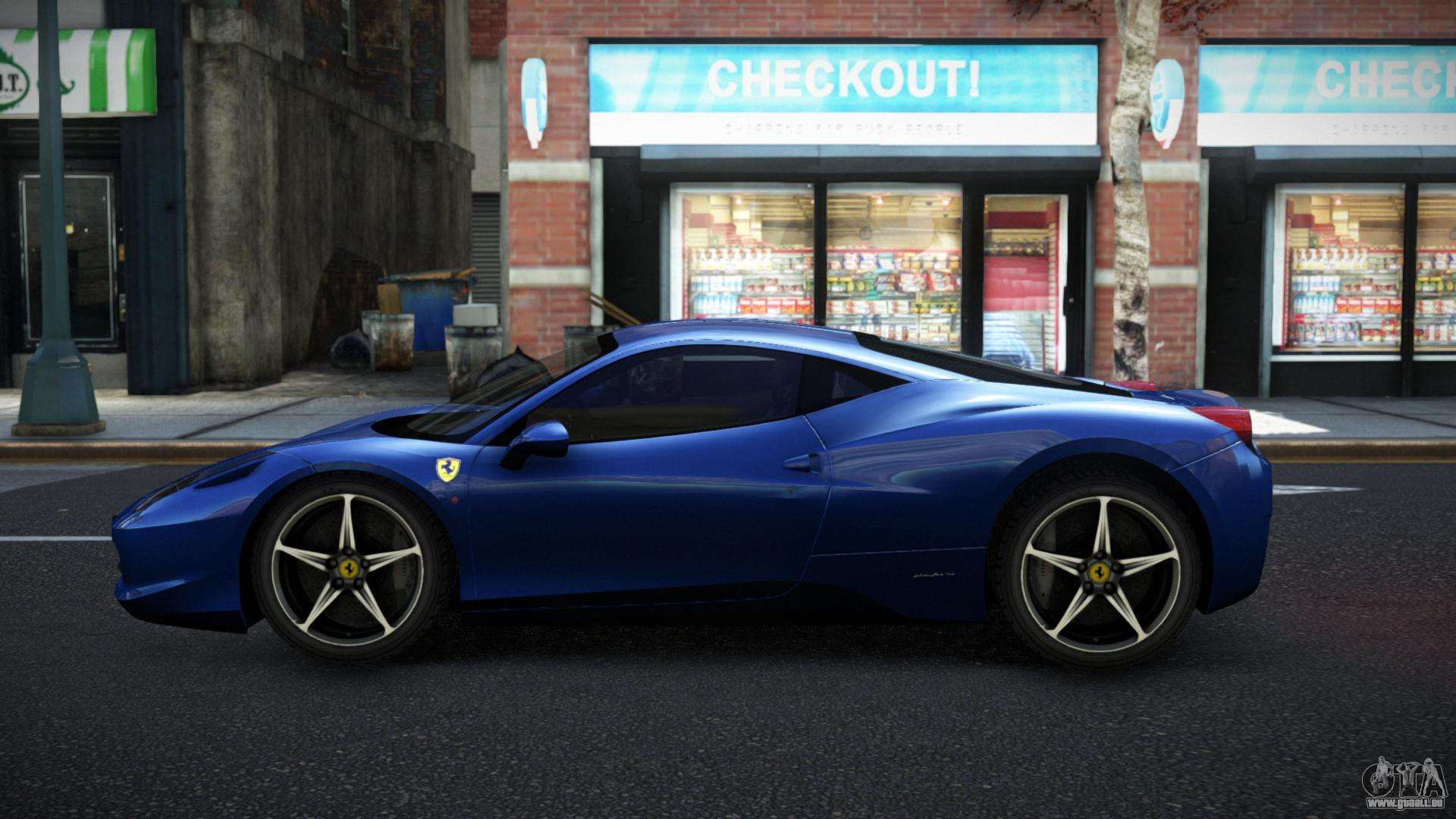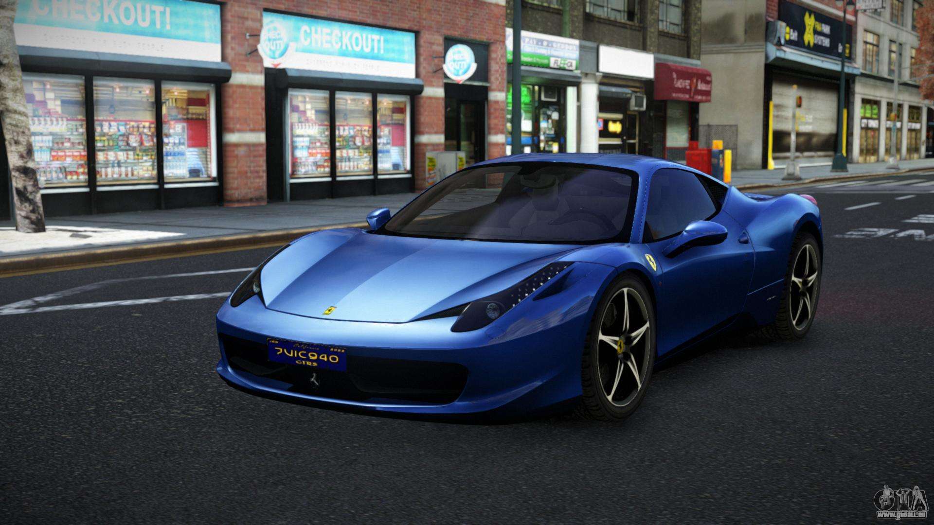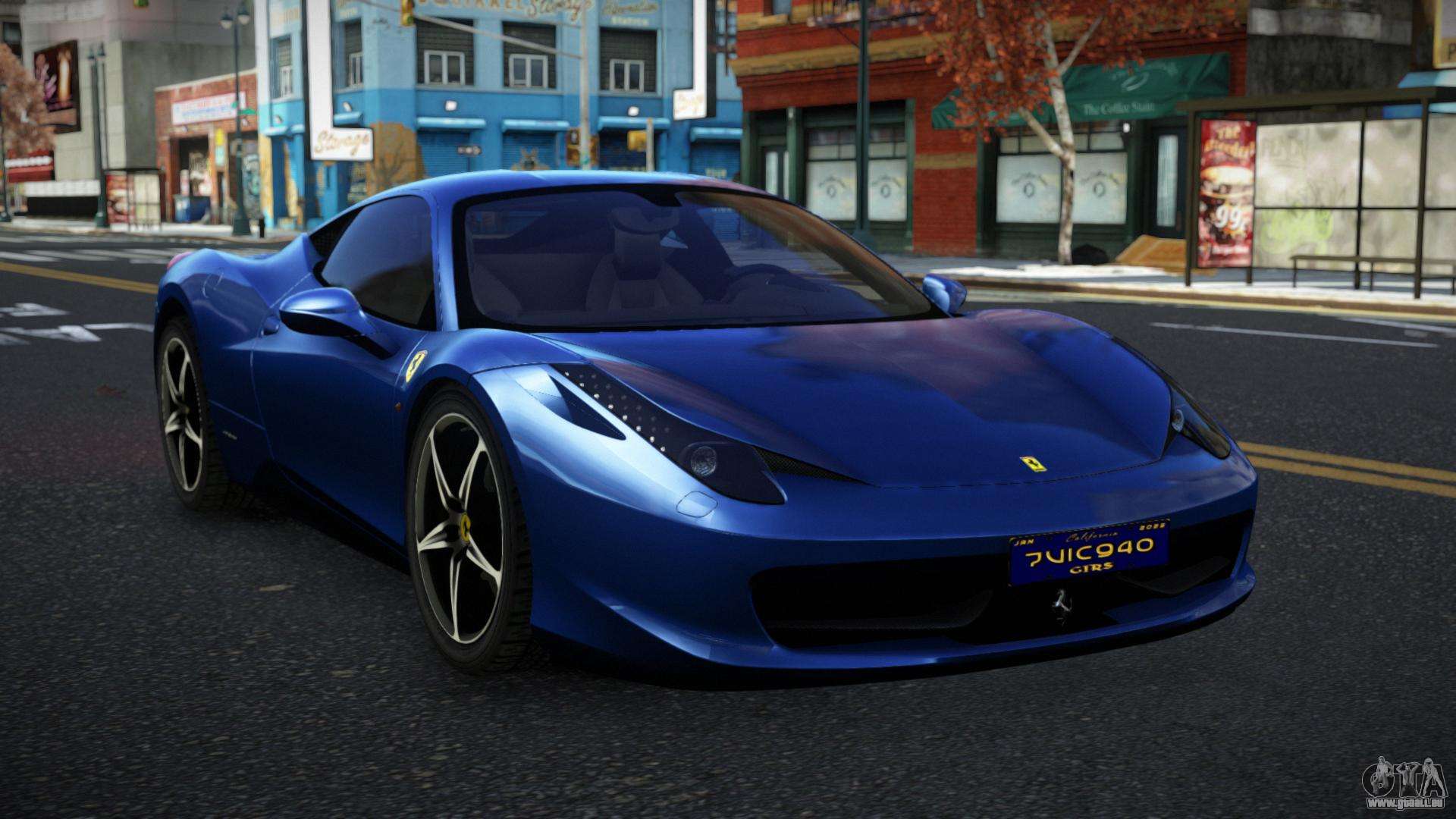 Vous pouvez télécharger gratuitement le mod Ferrari 458 Jebperalo pour GTA 4 en cliquant sur le lien ci-dessous. Installation automatique, par défaut pour remplacer Feltzer, ou avec l’aide de l’installateur, vous pouvez sélectionner n’importe quelle autre voiture standard du jeu.