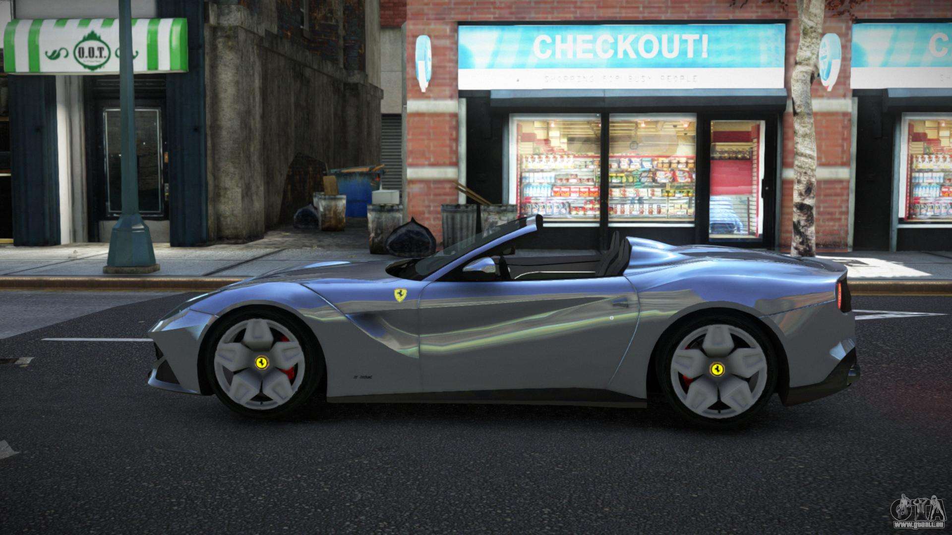 Pour télécharger gratuitement le mod Ferrari F12 Garaf pour GTA 4, il vous suffit de cliquer sur les liens en bas de la page. Notre installateur automatisé vous aidera à installer le mod de remplacement Feltzer en deux clics, ou vous pouvez choisir n’importe quel autre véhicule standard dans le jeu.