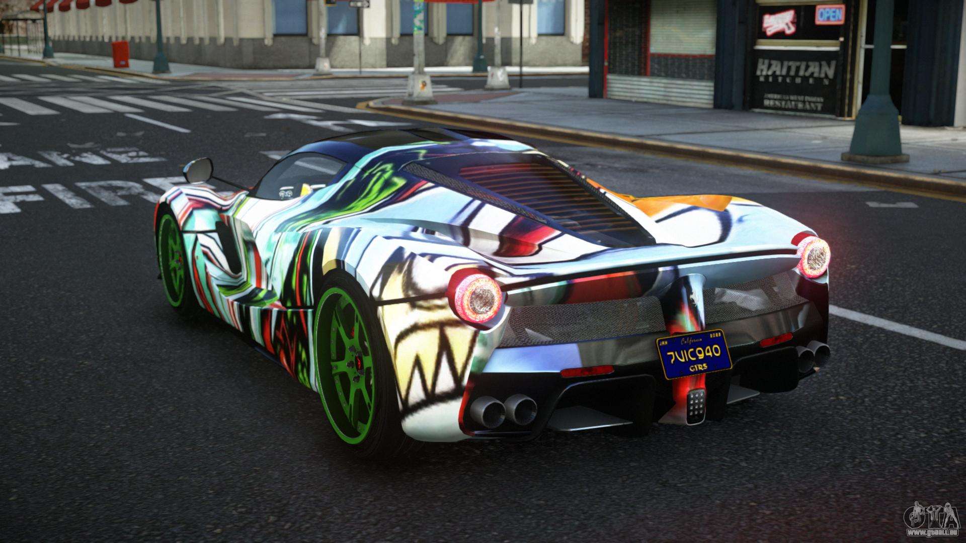 C’est ce qu’il te faut ! Suivez les liens ci-dessous pour télécharger gratuitement le mod Ferrari LaFerrari Jesmin S8 pour GTA 4. Le réglage par défaut est de remplacer la Banshee, ou avec l’aide du même installateur, vous pouvez la remplacer par n’importe quel transport standard.