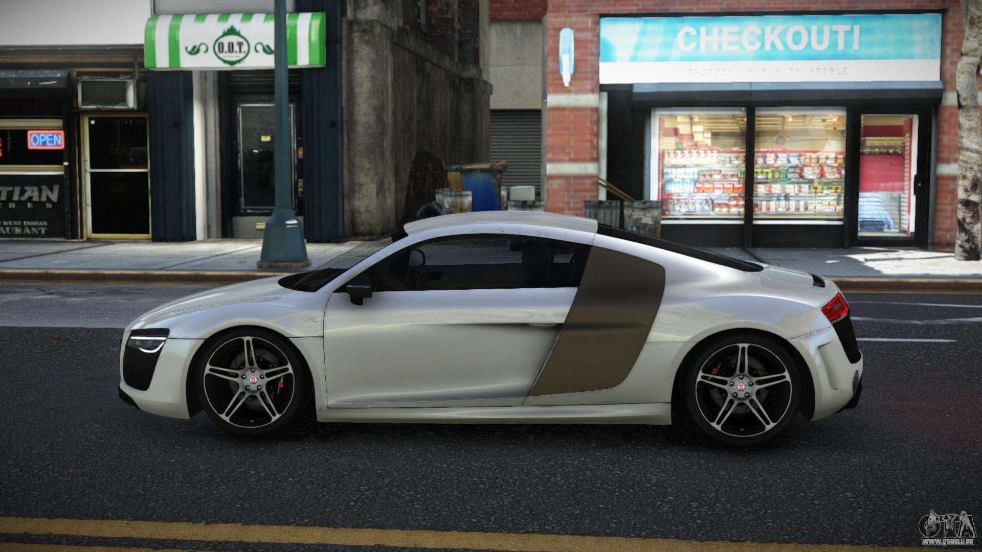 Vous pouvez télécharger le mod Audi R8 Lopko pour GTA 4 via les liens ci-dessous. Par défaut, le mod s’installe en deux clics pour remplacer la Banshee. Grâce à notre installateur avec installation automatique, vous pouvez remplacer n’importe quel autre véhicule standard dans le jeu.