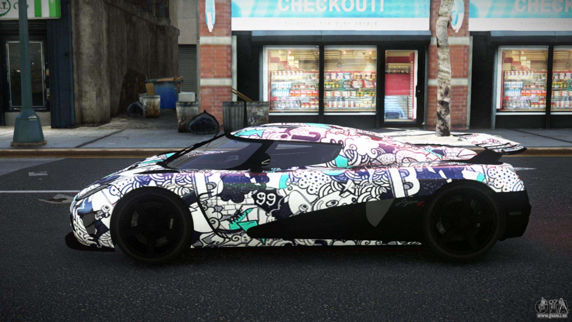 Vous pouvez télécharger gratuitement le mod Koenigsegg Agera Nixak S13 pour GTA 4 en cliquant sur le lien ci-dessous. Installation automatique, par défaut pour remplacer Feltzer, ou avec l’aide de l’installateur, vous pouvez sélectionner n’importe quelle autre voiture standard du jeu.