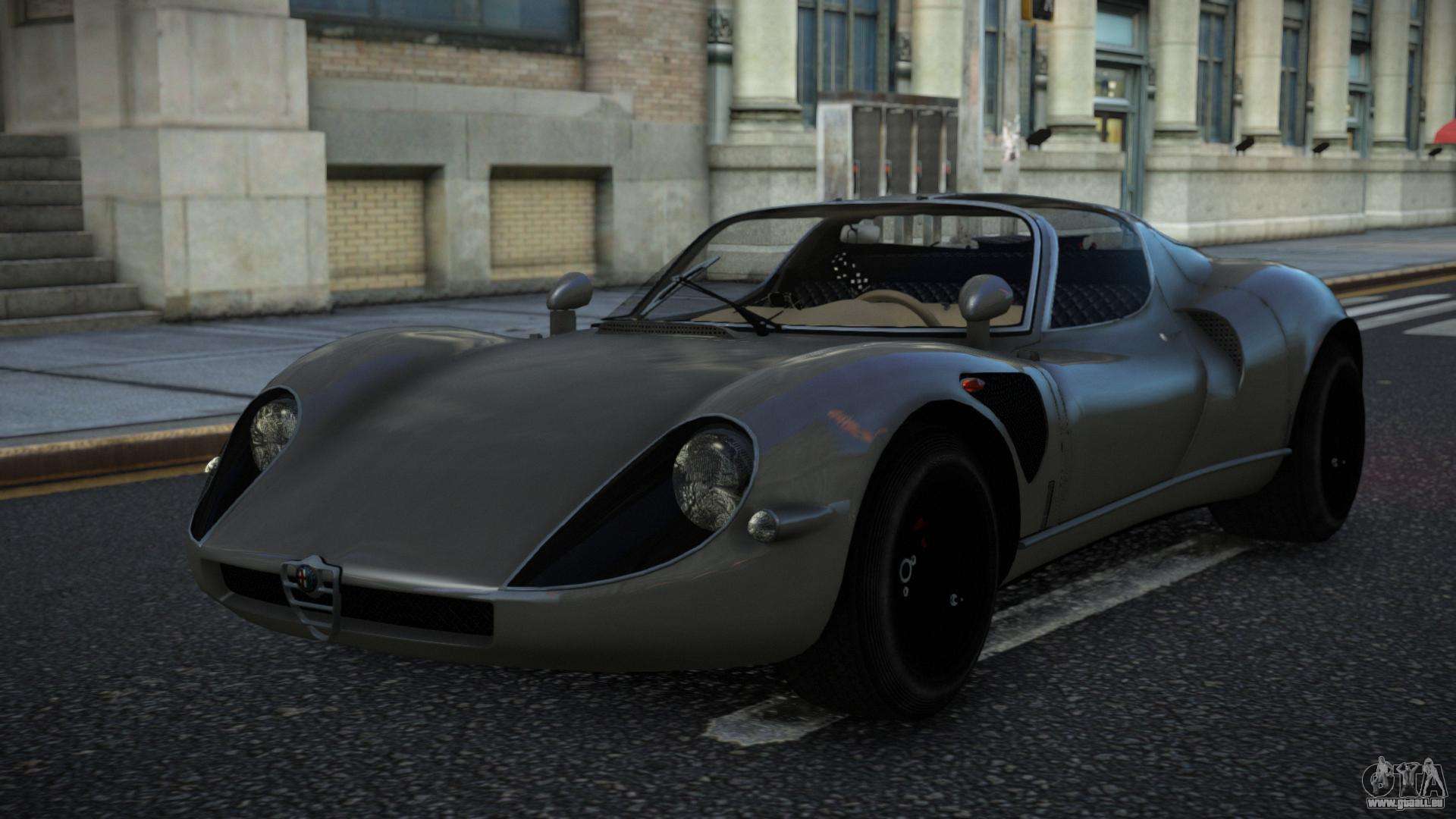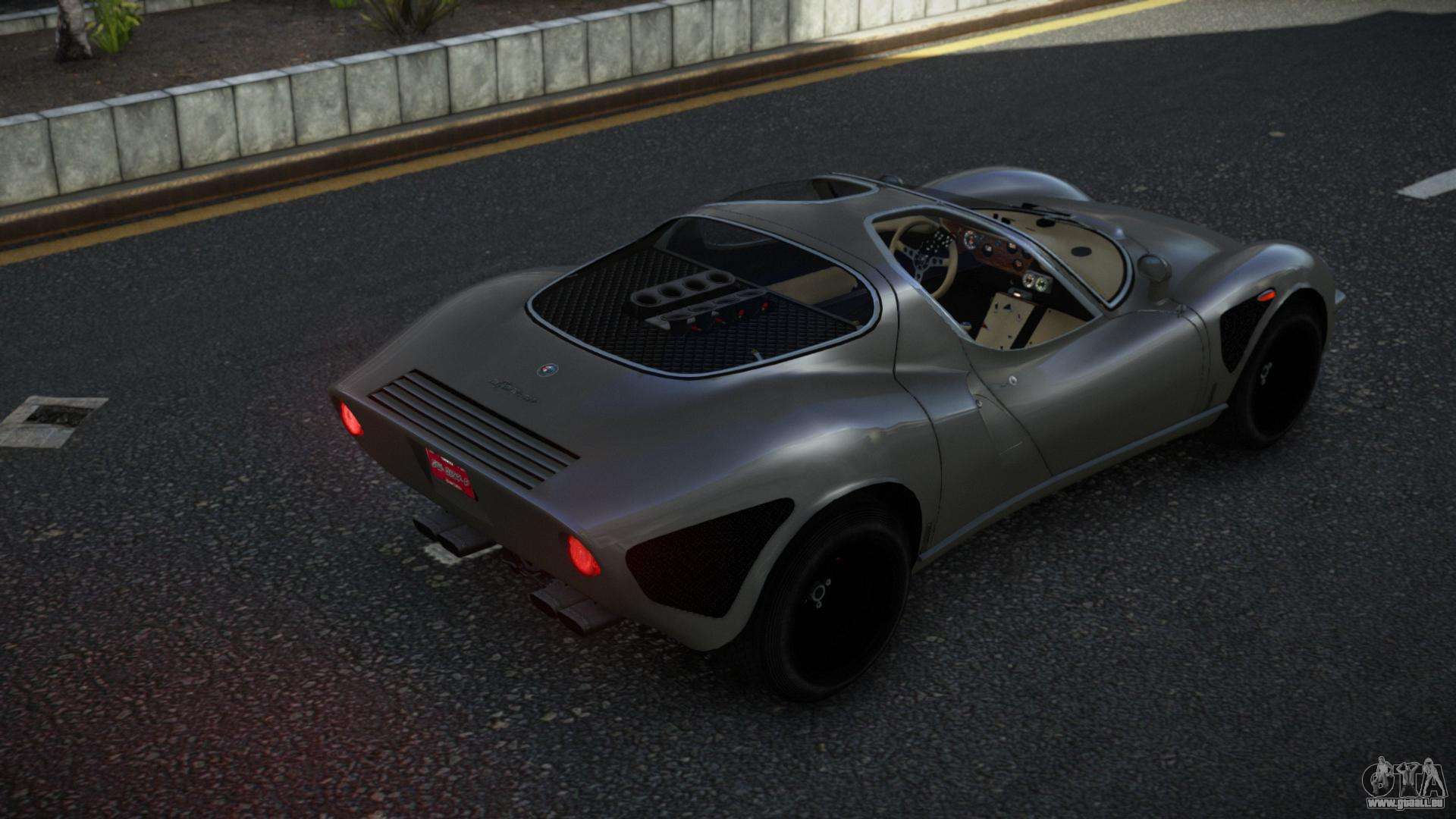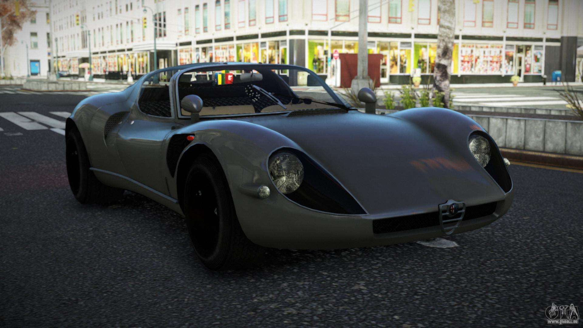Vous pouvez télécharger le mod Alfa Romeo 33 Wuvtovol pour GTA 4 via les liens ci-dessous. Par défaut, le mod est installé en deux clics pour remplacer Infernus. Grâce à notre installateur avec installation automatique, vous pouvez remplacer n’importe quel autre véhicule standard dans le jeu.