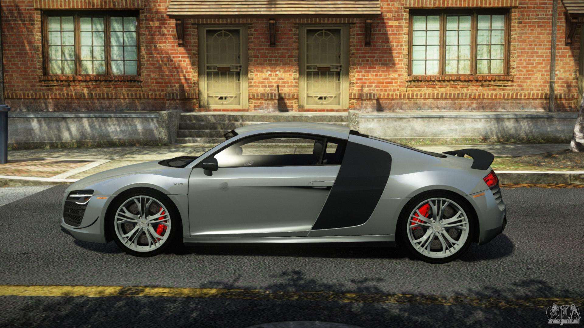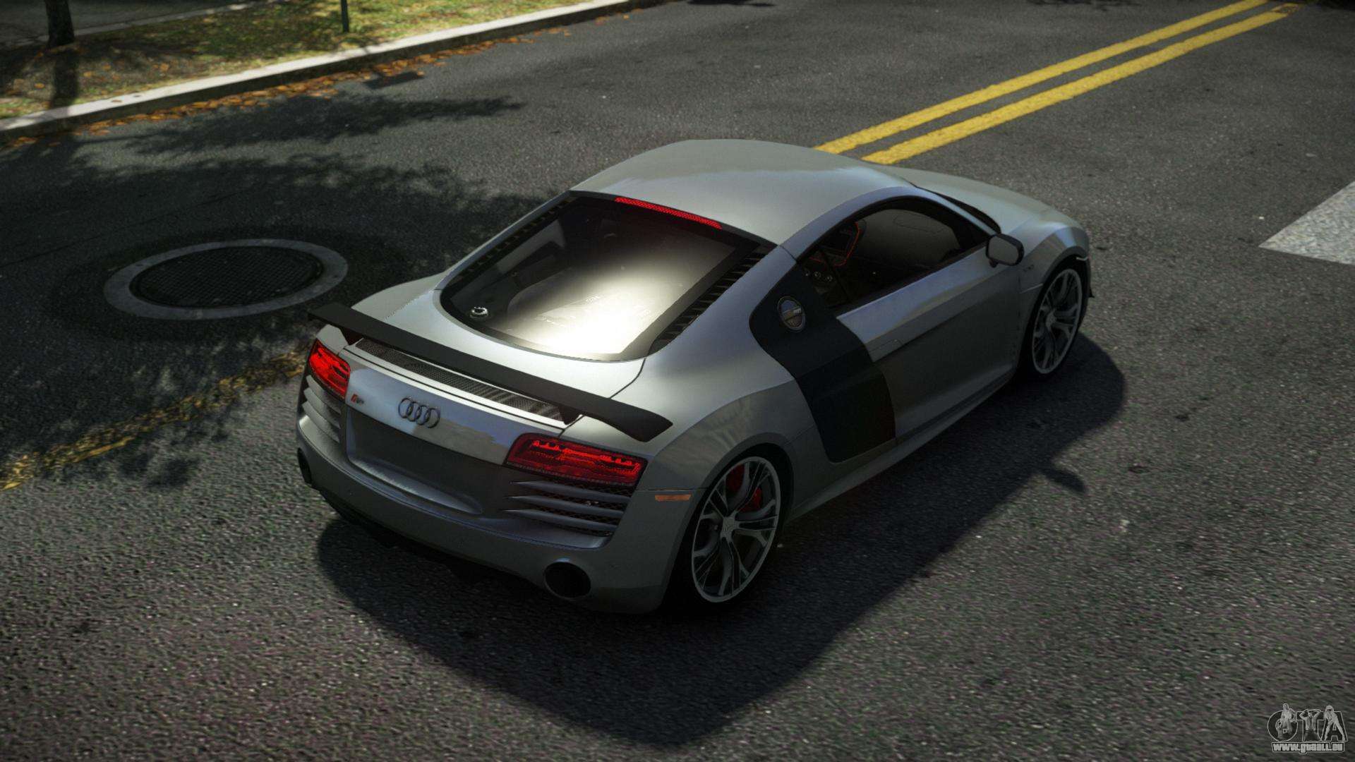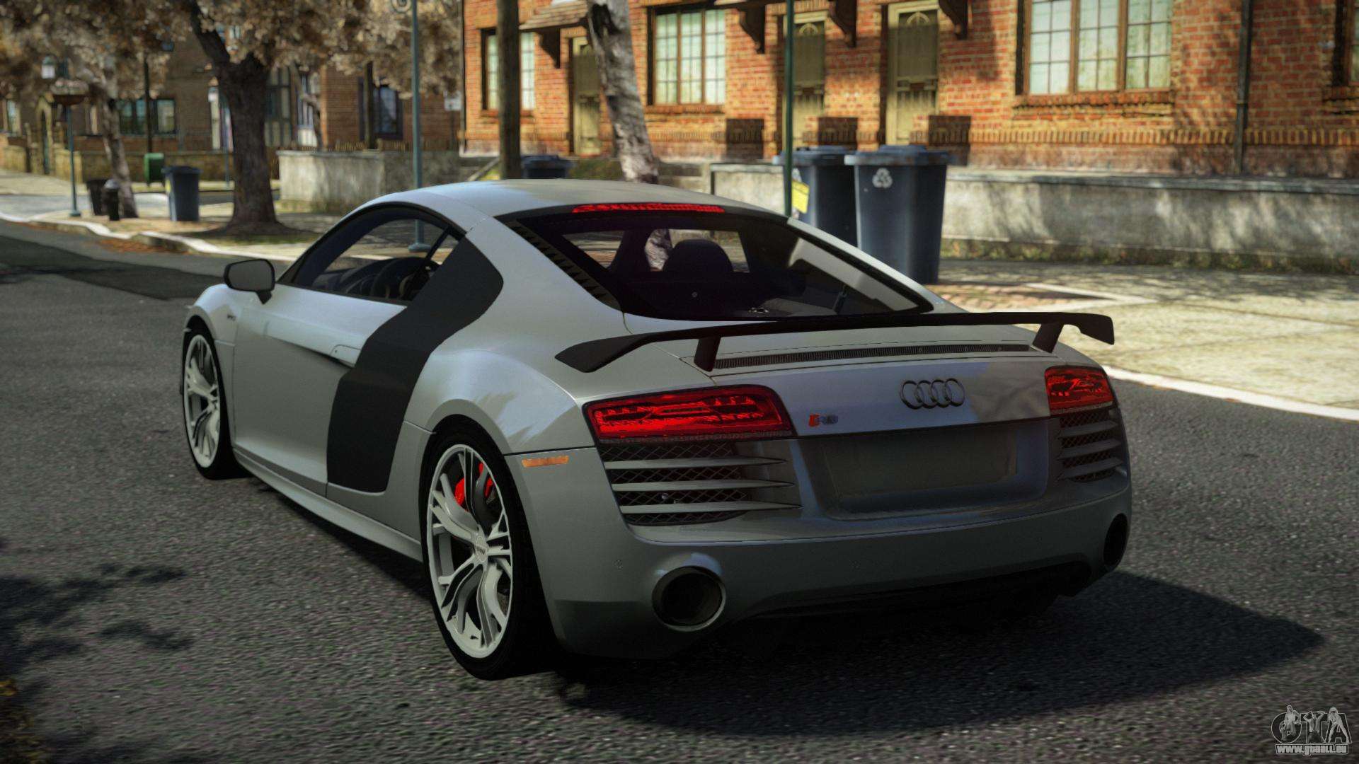 Pour télécharger gratuitement le mod Audi R8 Luso pour GTA 4, suivez les liens ci-dessous. L’installateur automatique remplace Turismo par défaut, mais vous pouvez choisir absolument n’importe quel véhicule standard du jeu que vous souhaitez remplacer par un nouveau modèle.