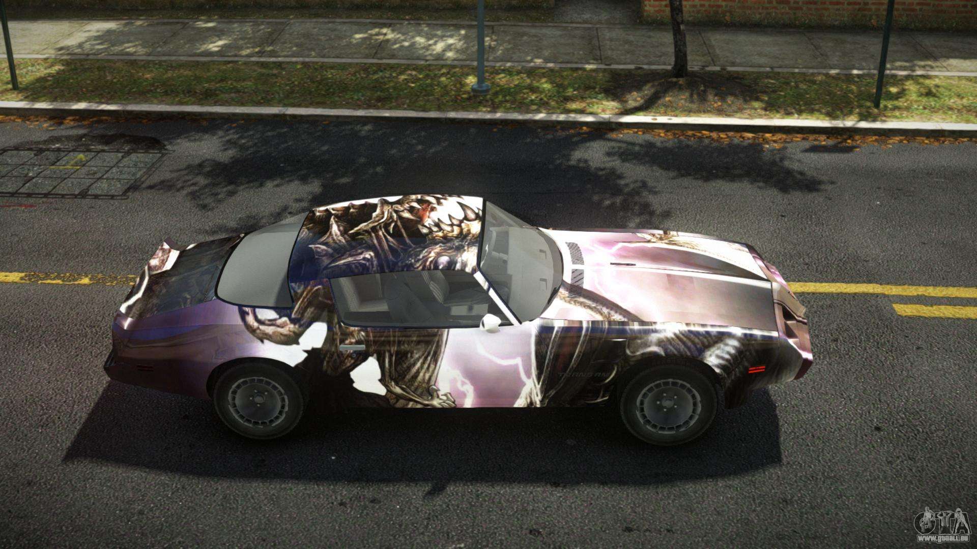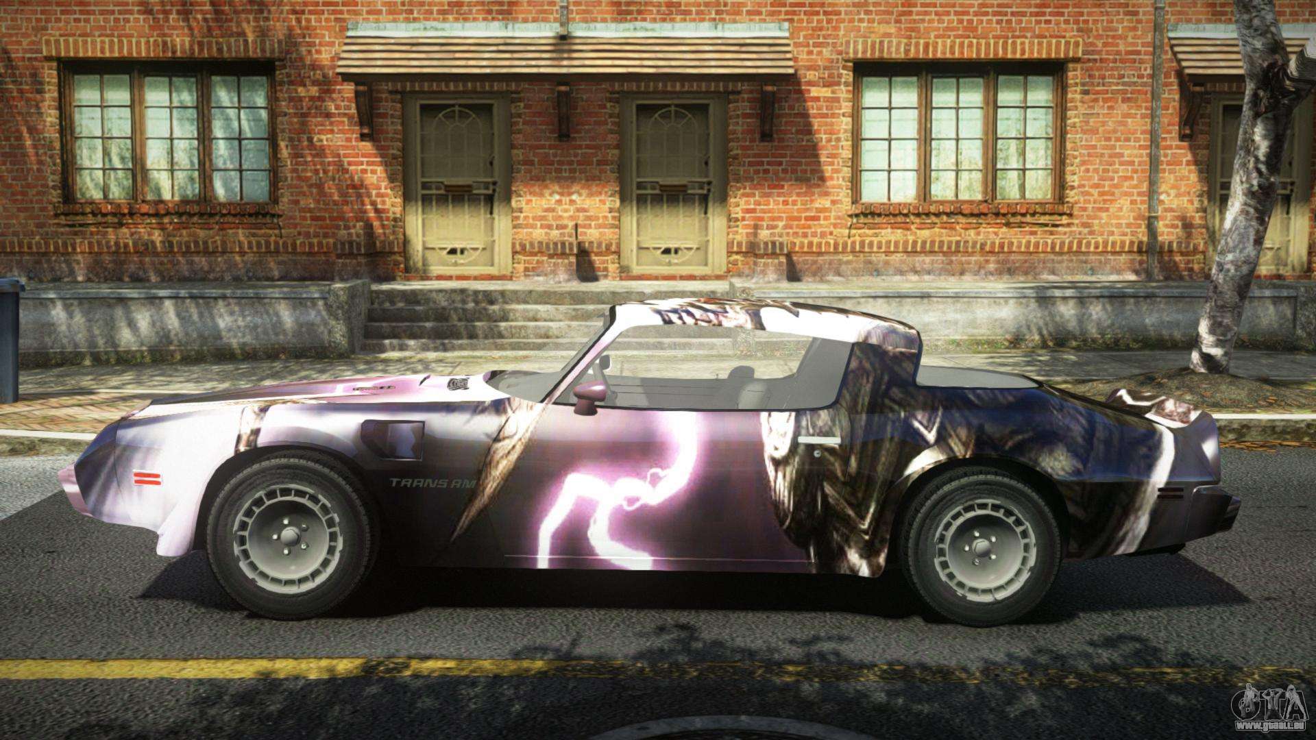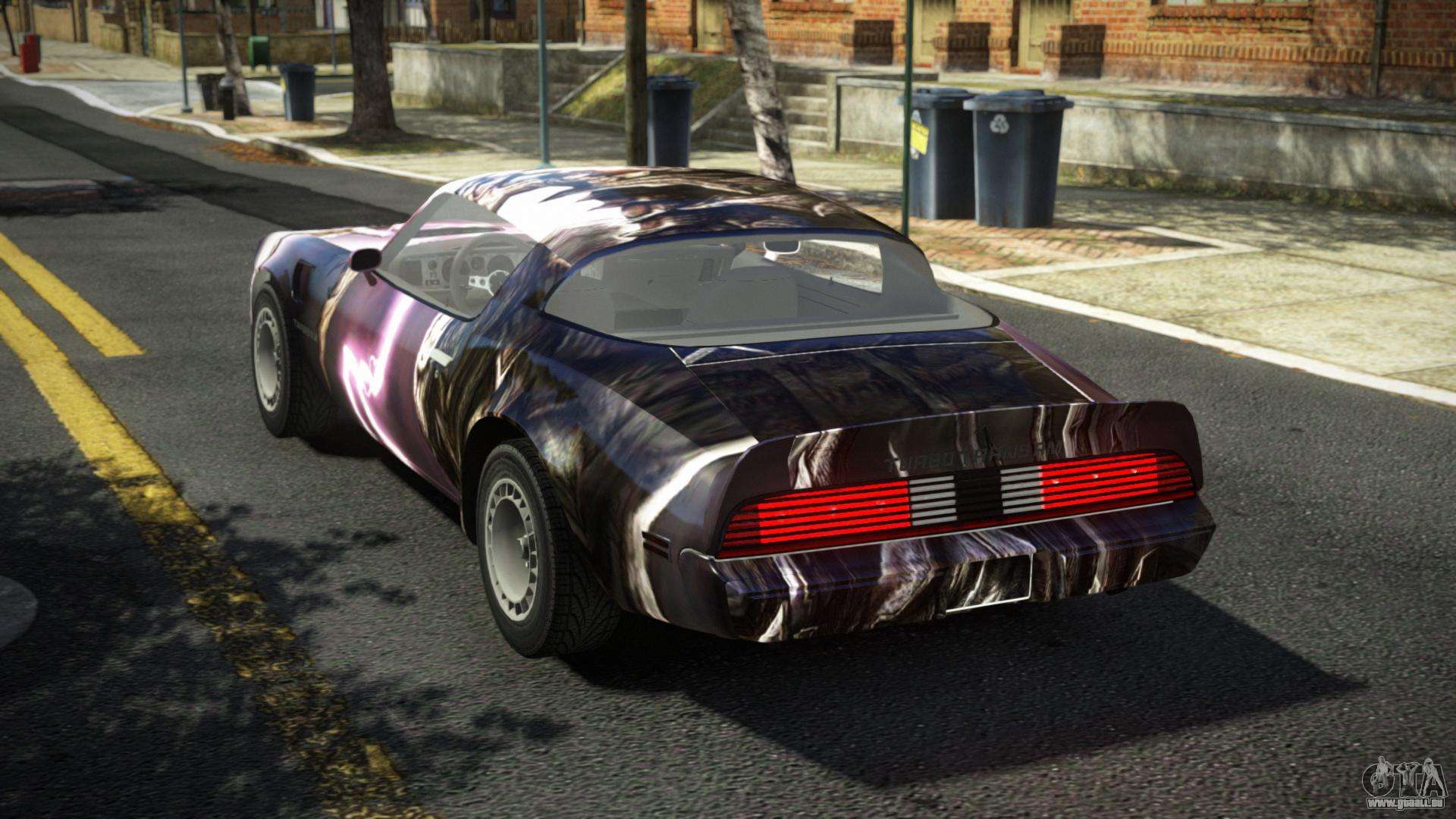 Pour télécharger gratuitement le mod Pontiac Trans AM Audly S9 pour GTA 4, il vous suffit de cliquer sur les liens en bas de la page. Notre installateur automatisé vous aidera à installer le mod de remplacement de Banshee en deux clics, ou vous pouvez choisir n’importe quel autre véhicule standard dans le jeu.