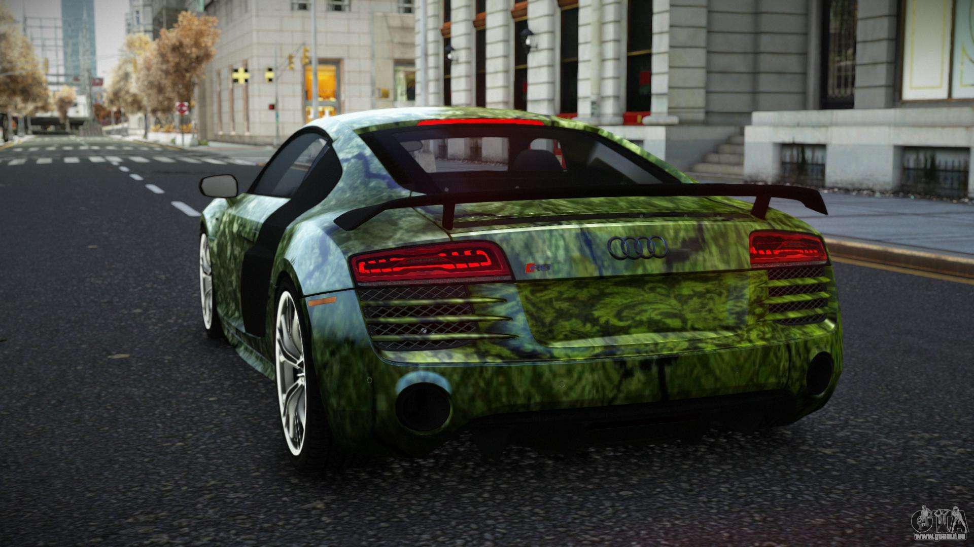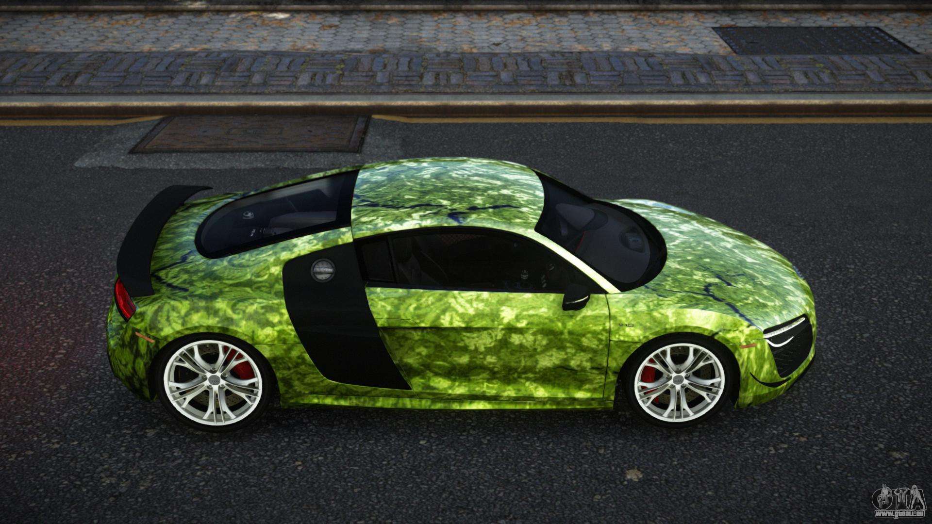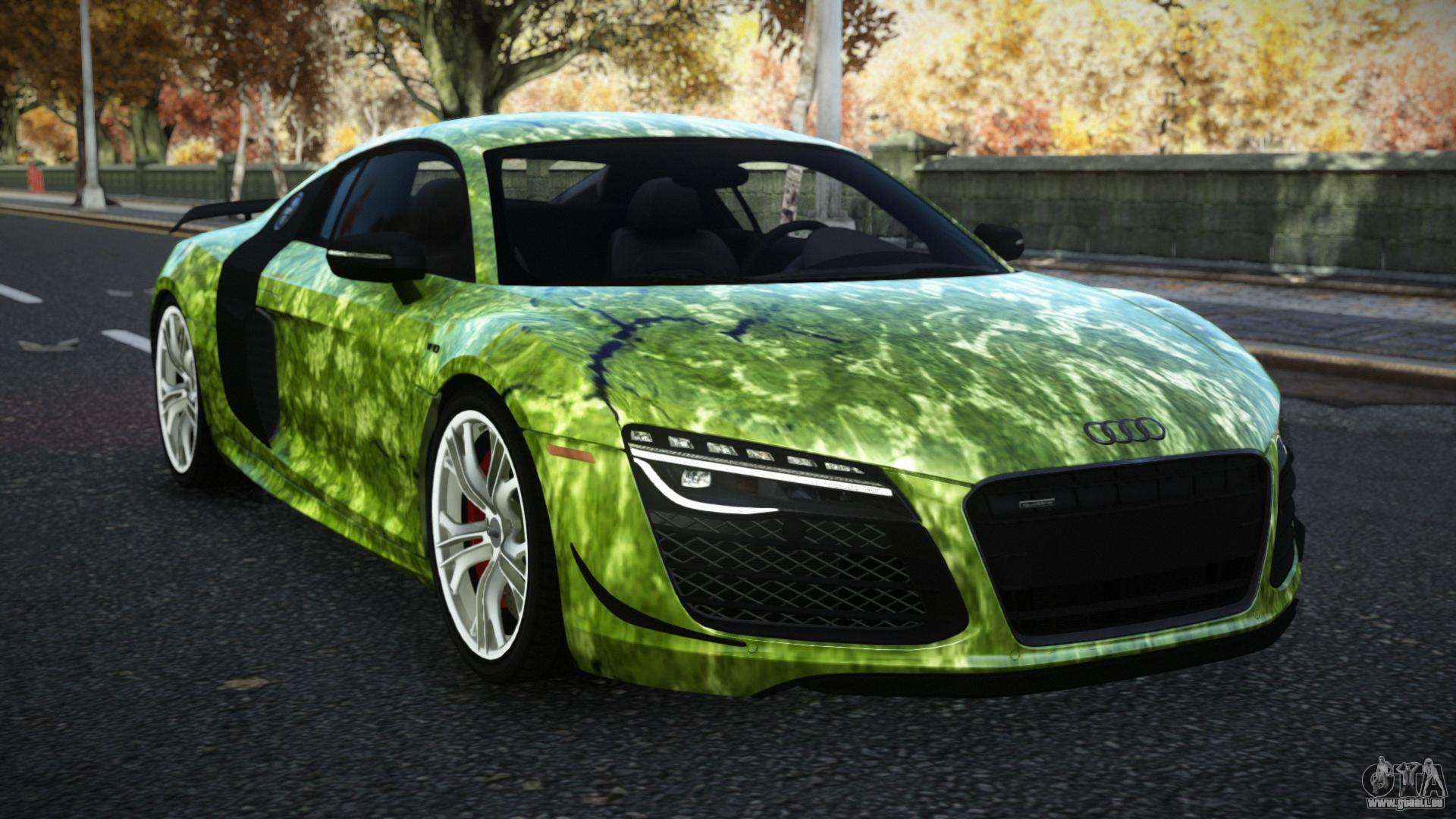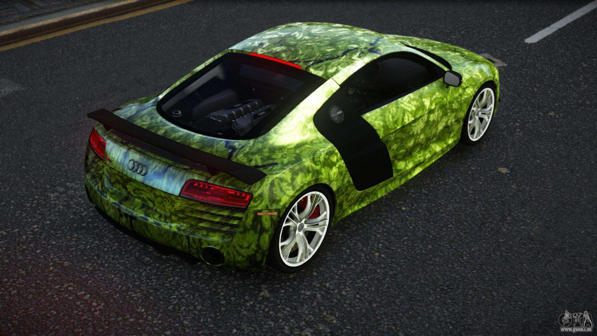 Vous pouvez apprécier tout le charme de la voiture en téléchargeant le mod Audi R8 Katian S12 pour GTA 4 en cliquant sur les liens ci-dessous. Le mod s’installe automatiquement en deux clics, par défaut il remplace la Banshee, ou choisit n’importe quel autre véhicule du jeu que vous souhaitez transformer.