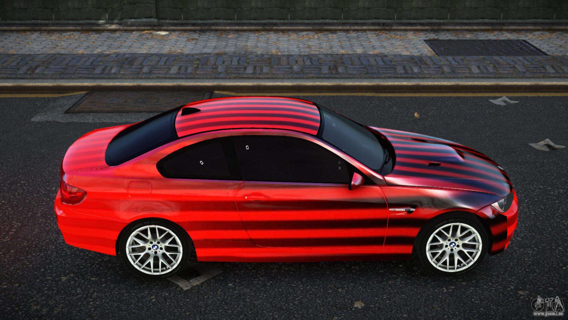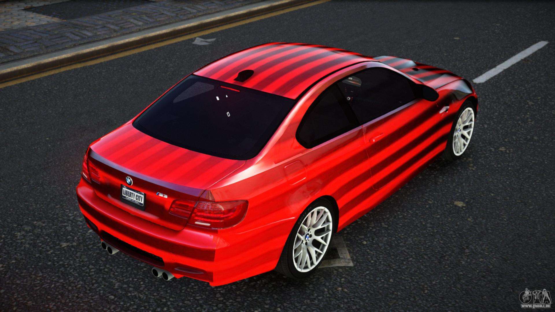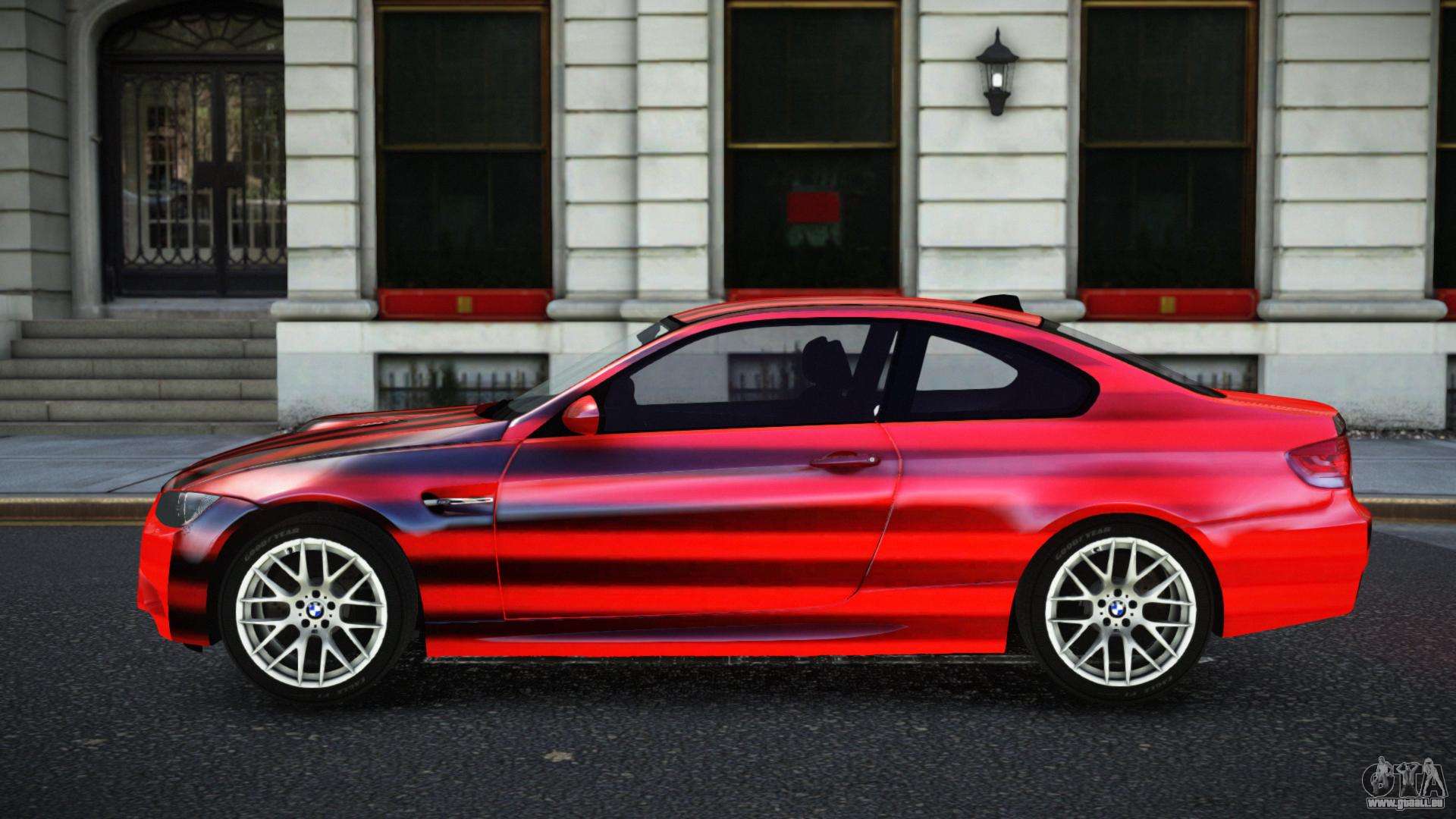 Vous pouvez apprécier tout le charme de la voiture en téléchargeant le mod BMW M3 E92 Lauthan S10 pour GTA 4 en cliquant sur les liens ci-dessous. Le mod s’installe automatiquement en deux clics, par défaut il remplace la Banshee, ou choisit n’importe quel autre véhicule du jeu que vous souhaitez transformer.