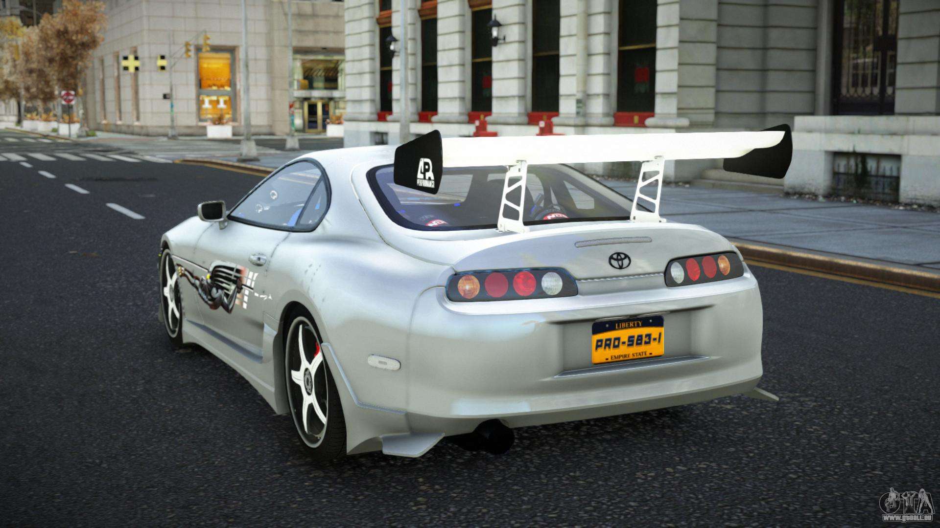 Pour télécharger gratuitement le mod Toyota Supra Yeple pour GTA 4, il vous suffit de cliquer sur les liens en bas de la page. Notre installateur automatisé vous aidera à installer le mod de remplacement du Sabre en deux clics, ou vous pouvez choisir n’importe quel autre véhicule standard du jeu.