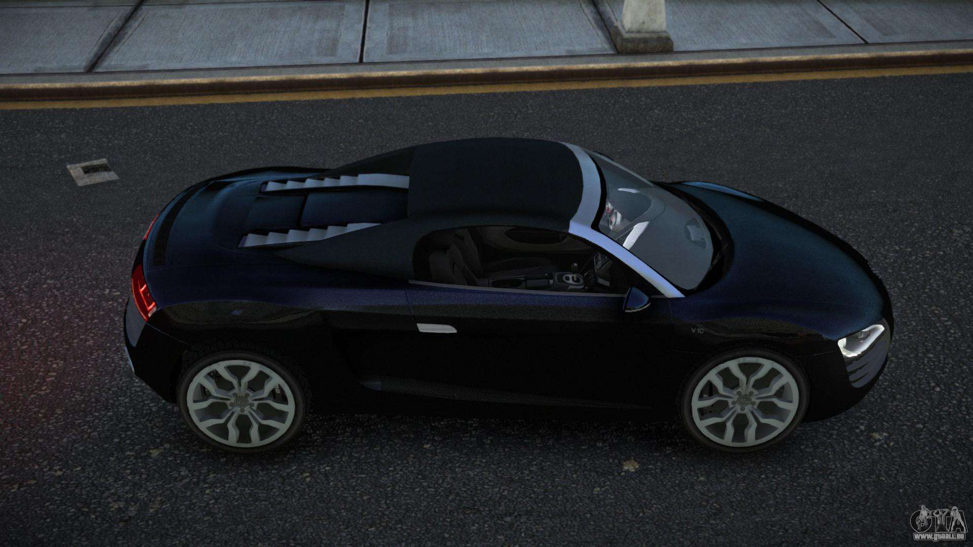 Vous pouvez apprécier tout le charme de la voiture en téléchargeant le mod Audi R8 Kohtof pour GTA 4 en cliquant sur les liens ci-dessous. Le mod s’installe automatiquement en deux clics, par défaut il remplace Feltzer, ou choisissez n’importe quel autre véhicule du jeu que vous souhaitez transformer.