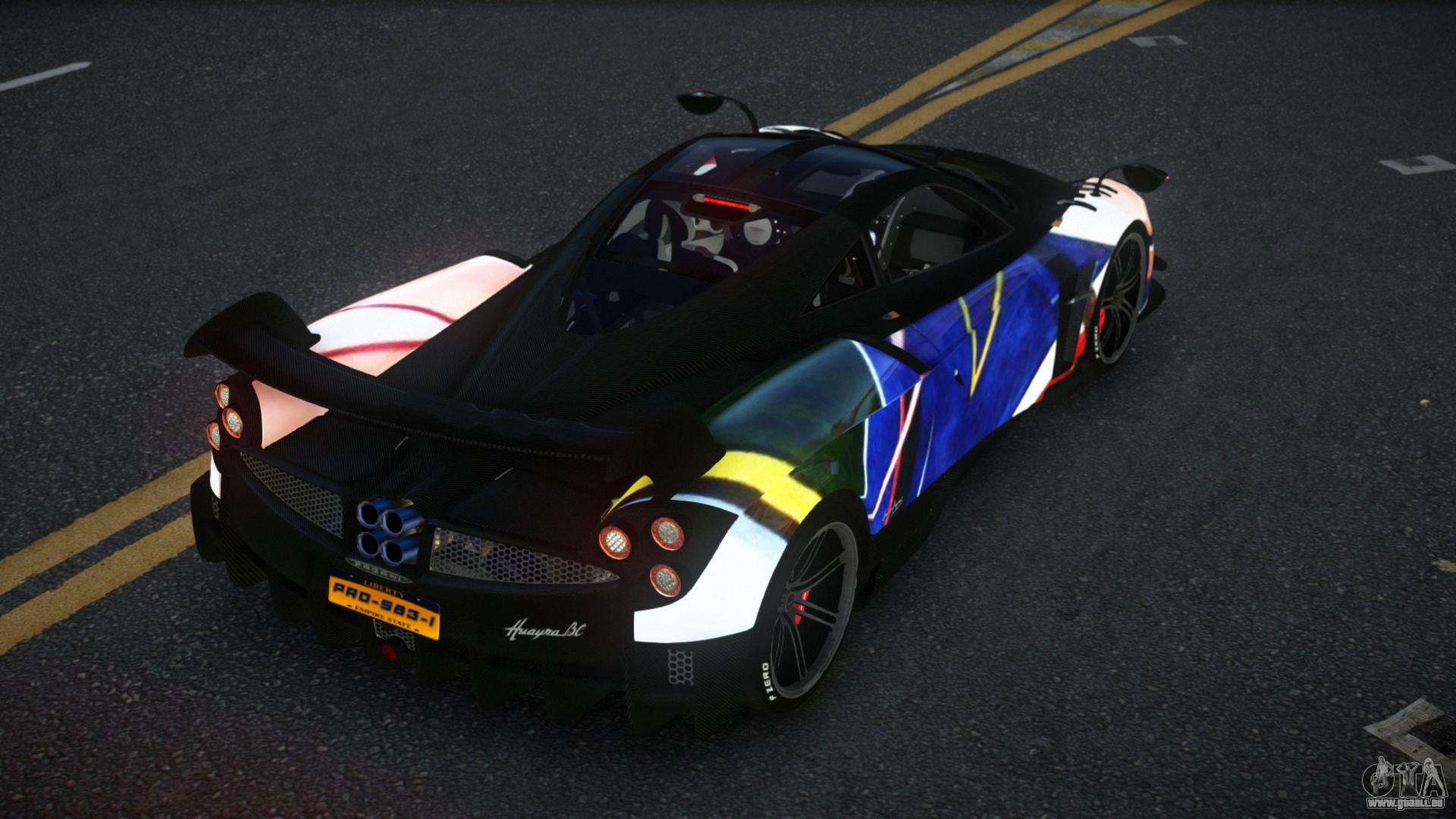 Le mod Pagani Huayra Hanria S13 pour GTA 4 peut être téléchargé ci-dessous aux liens. La modification est installée automatiquement par défaut pour remplacer la Banshee, et avec l’aide de notre installateur, vous pouvez aussi la remplacer par n’importe quel véhicule de jeu standard.