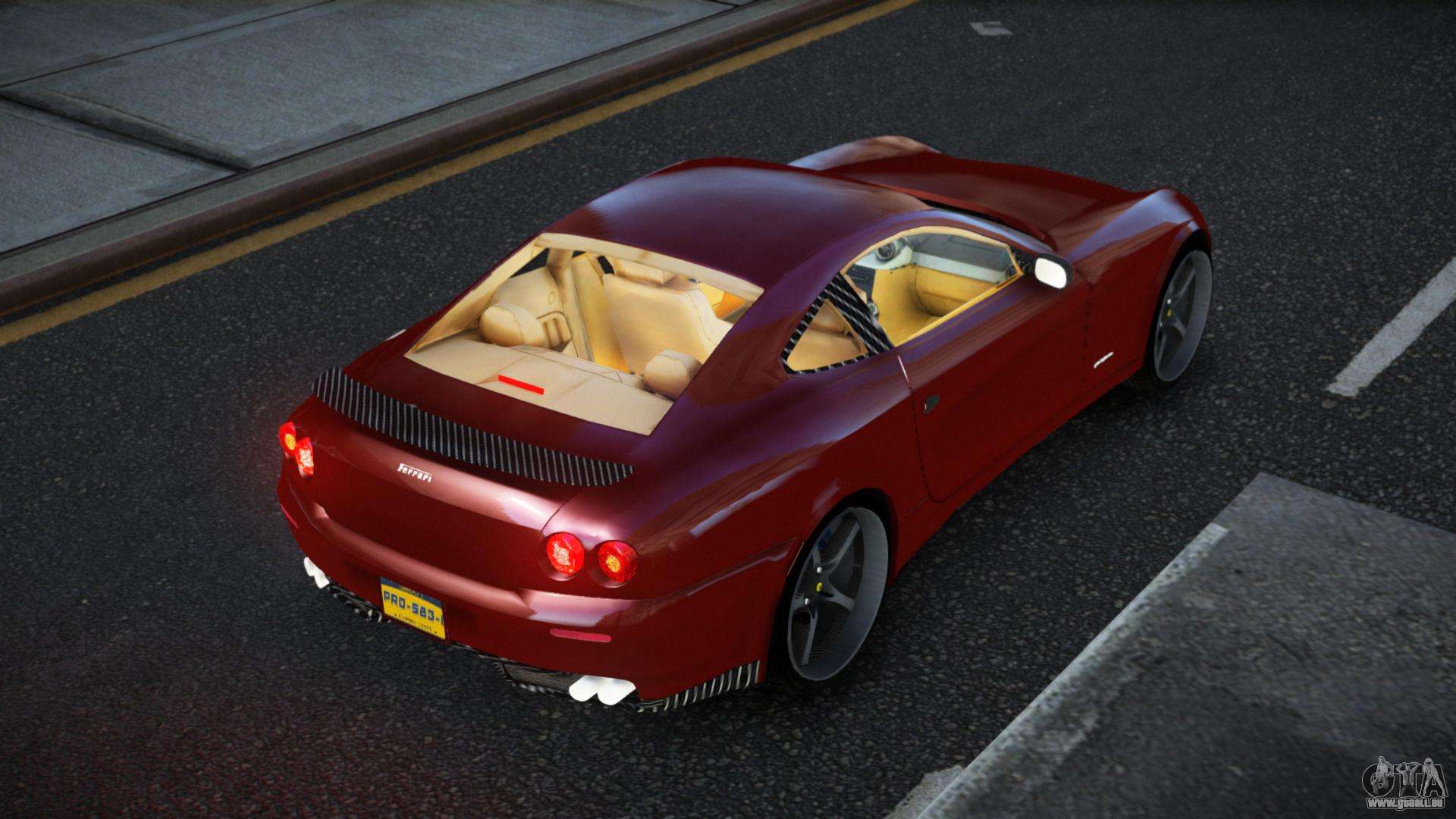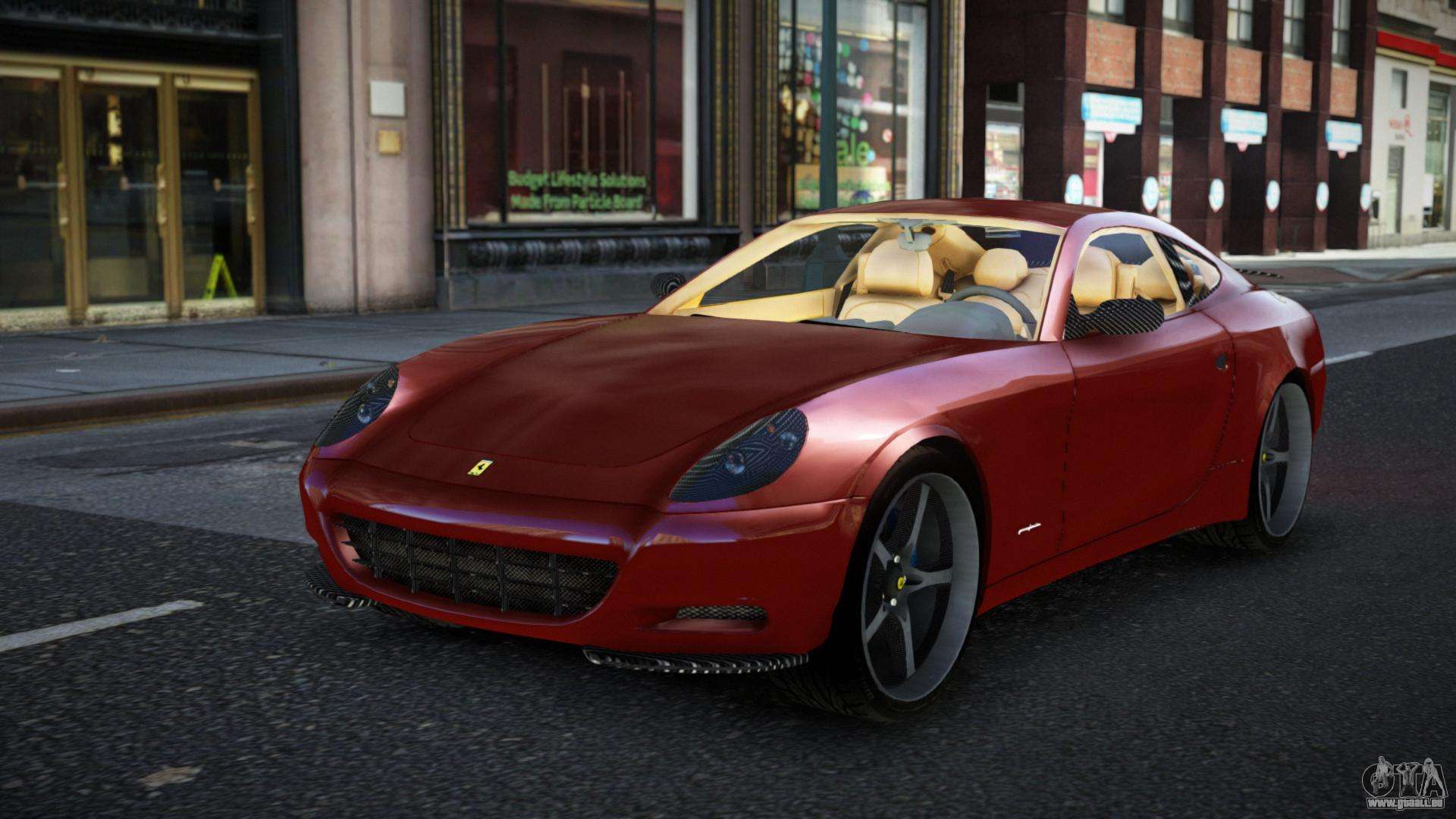 Vous pouvez télécharger gratuitement le mod Ferrari 612 Kojuhih pour GTA 4 en cliquant sur le lien ci-dessous. Installation automatique, par défaut pour remplacer Feltzer, ou avec l’aide de l’installateur, vous pouvez sélectionner n’importe quelle autre voiture standard du jeu.