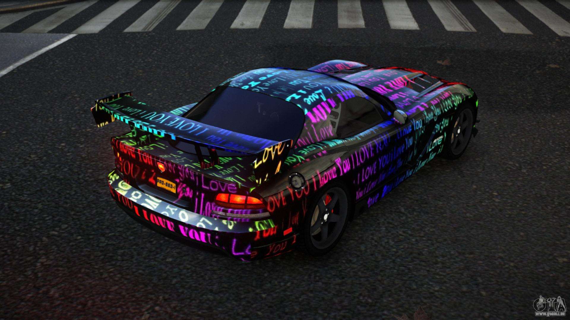 Pour télécharger gratuitement Dodge Viper Seckja S7 pour GTA 4, il suffit de cliquer sur les liens en bas de la page. Notre installateur automatisé vous aidera à installer le mod de remplacement Feltzer en deux clics, ou vous pouvez choisir n’importe quel autre véhicule standard dans le jeu.