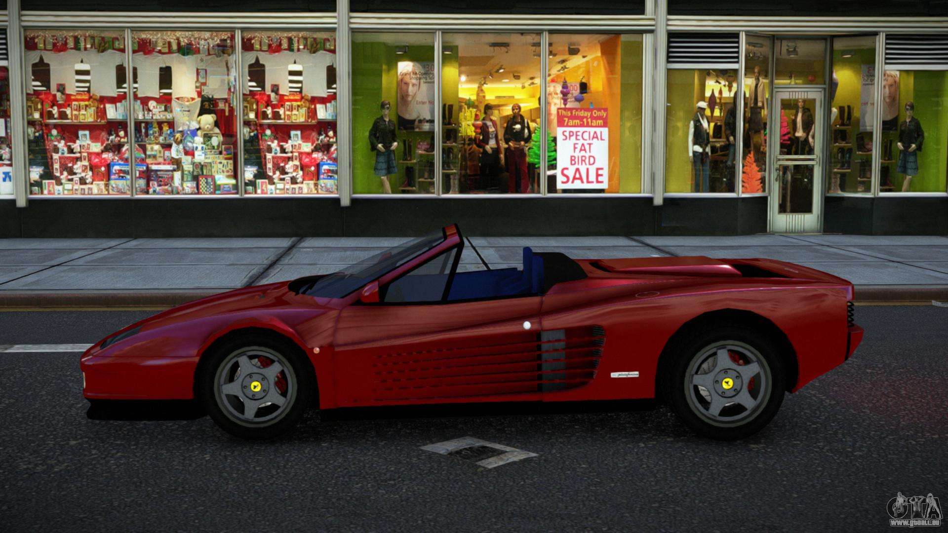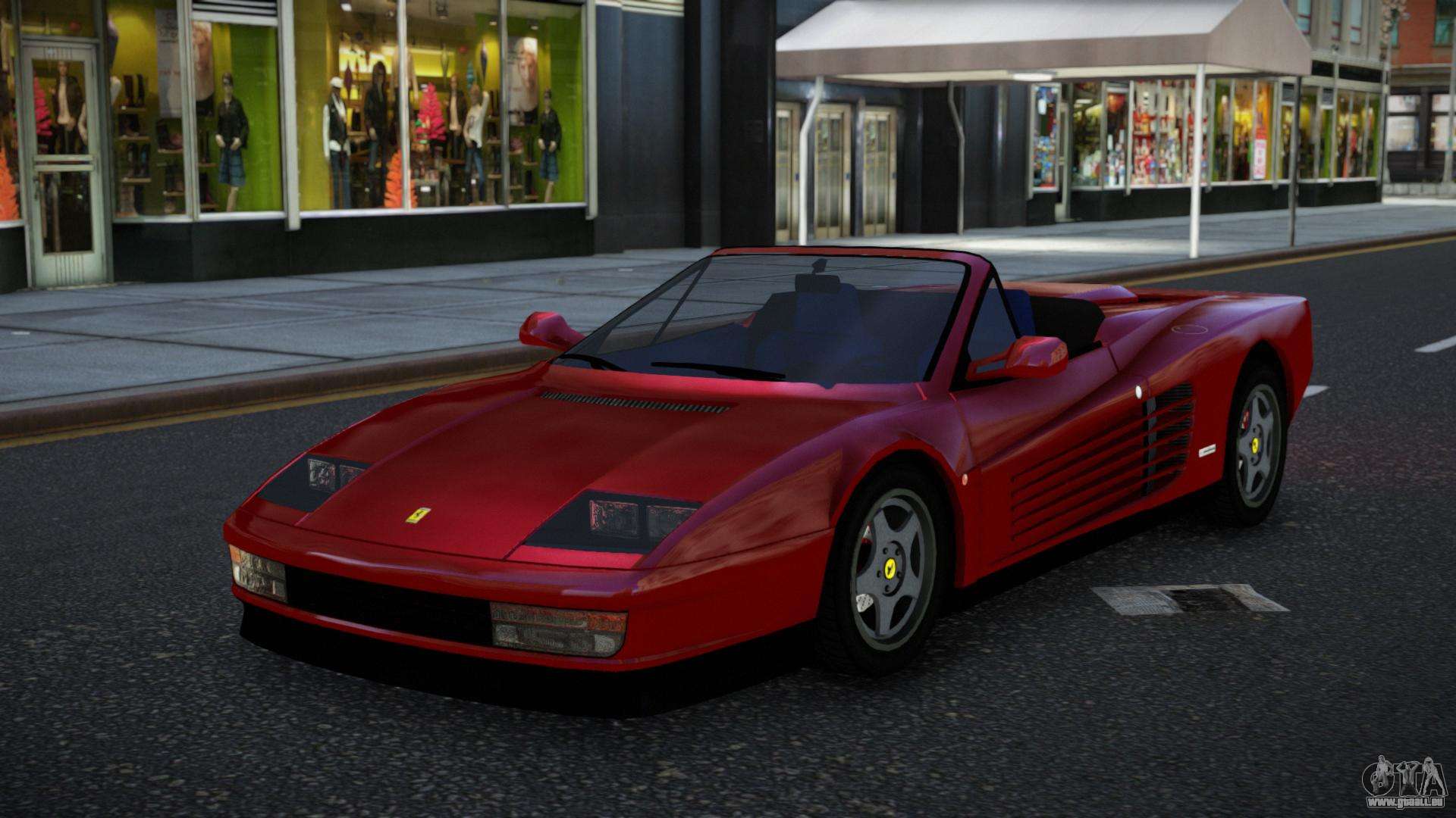 C’est ce qu’il te faut ! Suivez les liens ci-dessous pour télécharger gratuitement le mod Ferrari Testarossa Judhukur pour GTA 4. Le réglage par défaut est de remplacer Turismo, ou avec l’aide du même installateur, vous pouvez le remplacer par n’importe quel transport standard.
