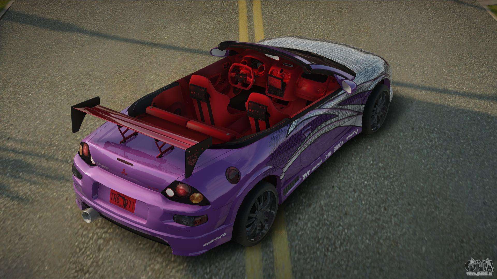 Vous pouvez télécharger gratuitement le mod Mitsubishi Eclipse 2002 Spyder pour GTA San Andreas en utilisant les liens ci-dessous.