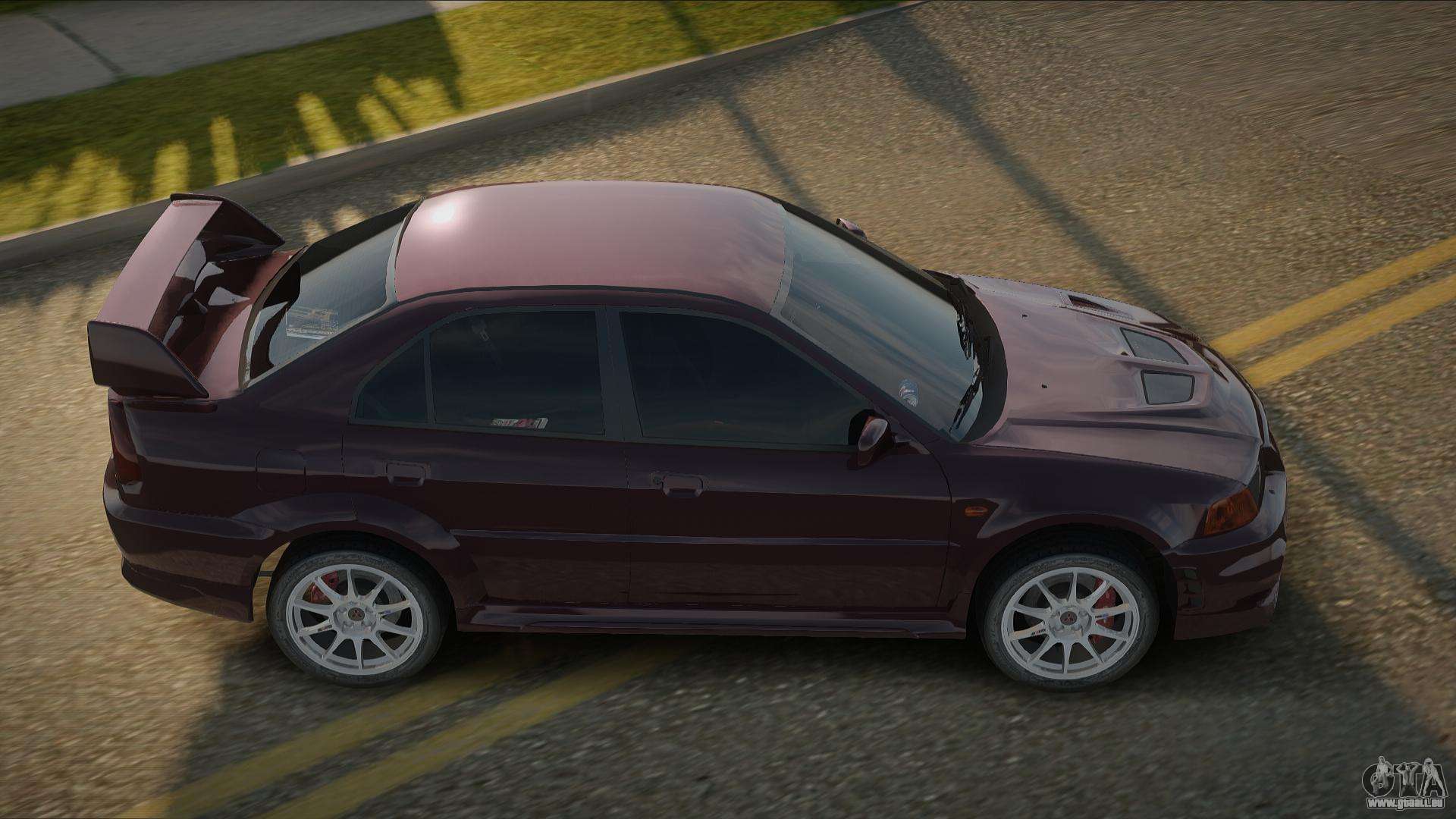 Pour télécharger gratuitement le mod Mitsubishi Lancer Evolution VI 99th pour GTA San Andreas, suivez les liens ci-dessous. L’installateur automatique remplace Sultan par défaut, mais vous pouvez choisir absolument n’importe quel véhicule standard du jeu que vous souhaitez remplacer par un nouveau modèle.
