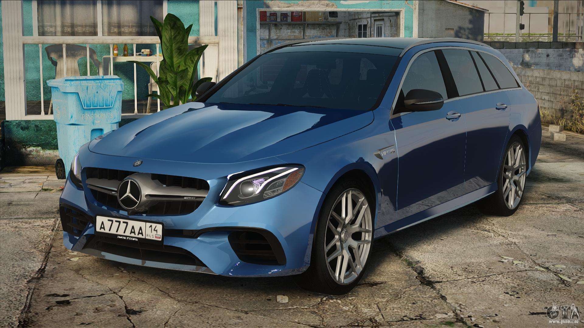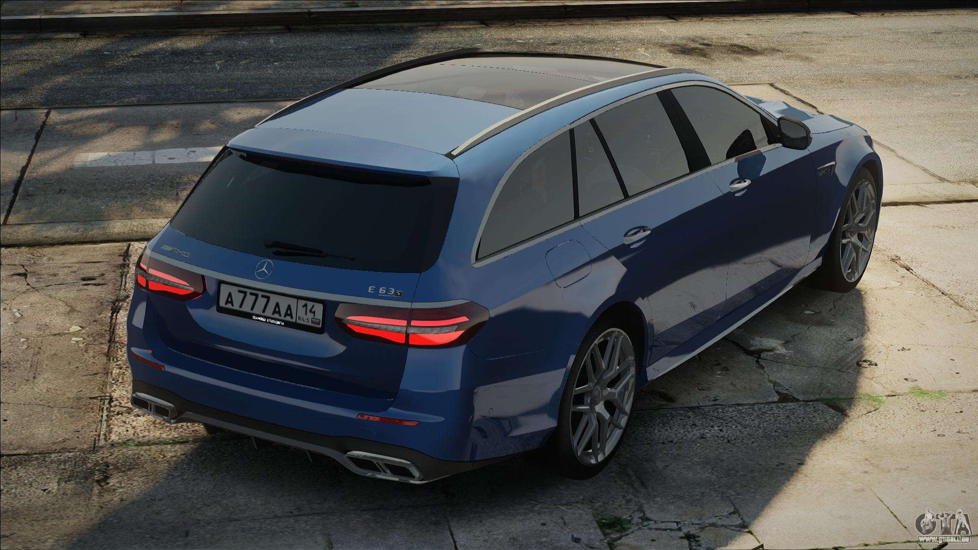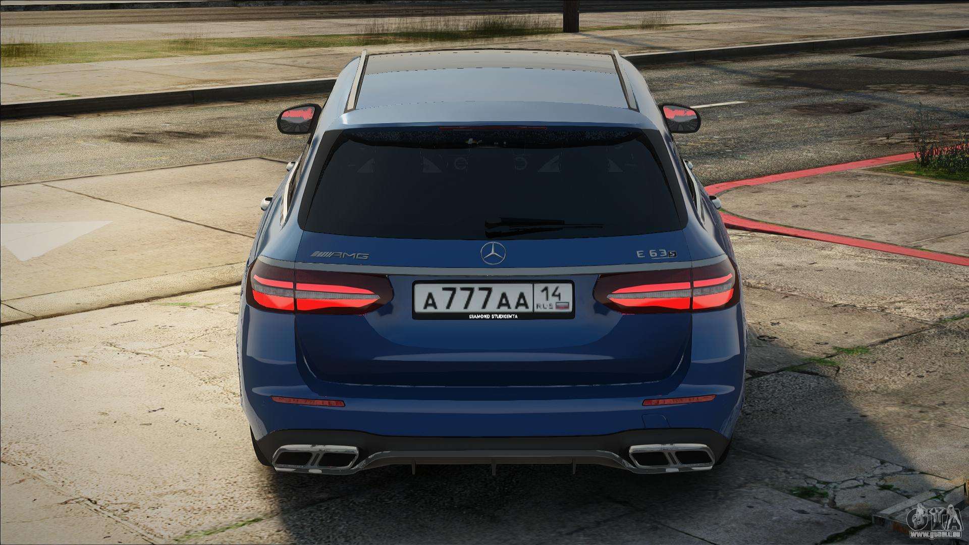 Voiture de qualité - Mercedes-Benz E63s W213 Estate Blue pour GTA San Andreas. La carrosserie et l’intérieur du modèle sont bien détaillés. La voiture s’intègre parfaitement dans le jeu !