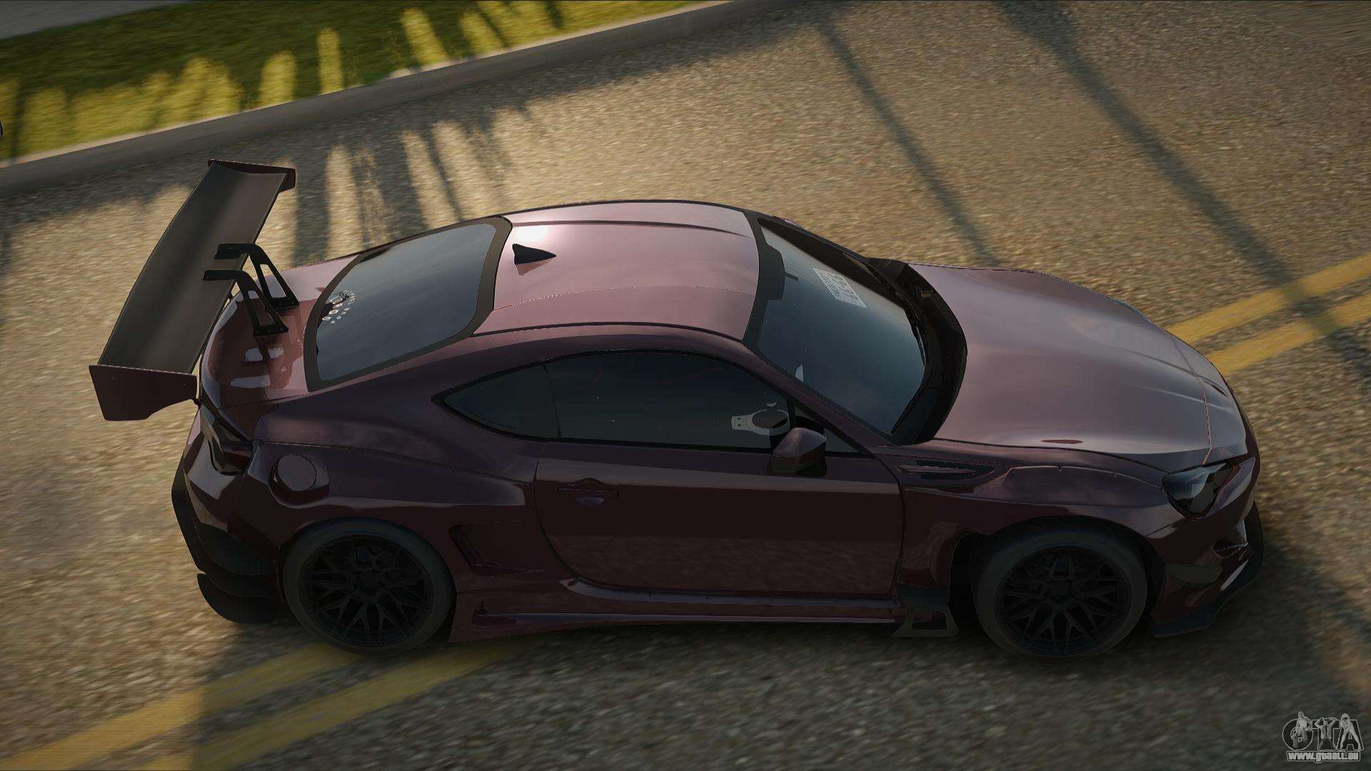 Pour télécharger gratuitement le mod de voiture Subaru BRZ G-Style pour GTA San Andreas, il vous suffit de cliquer sur les liens en bas de la page. Notre installateur automatisé vous aidera à installer le mod pour remplacer l’Elegy en deux clics, ou vous pouvez choisir n’importe quel autre véhicule standard dans le jeu.