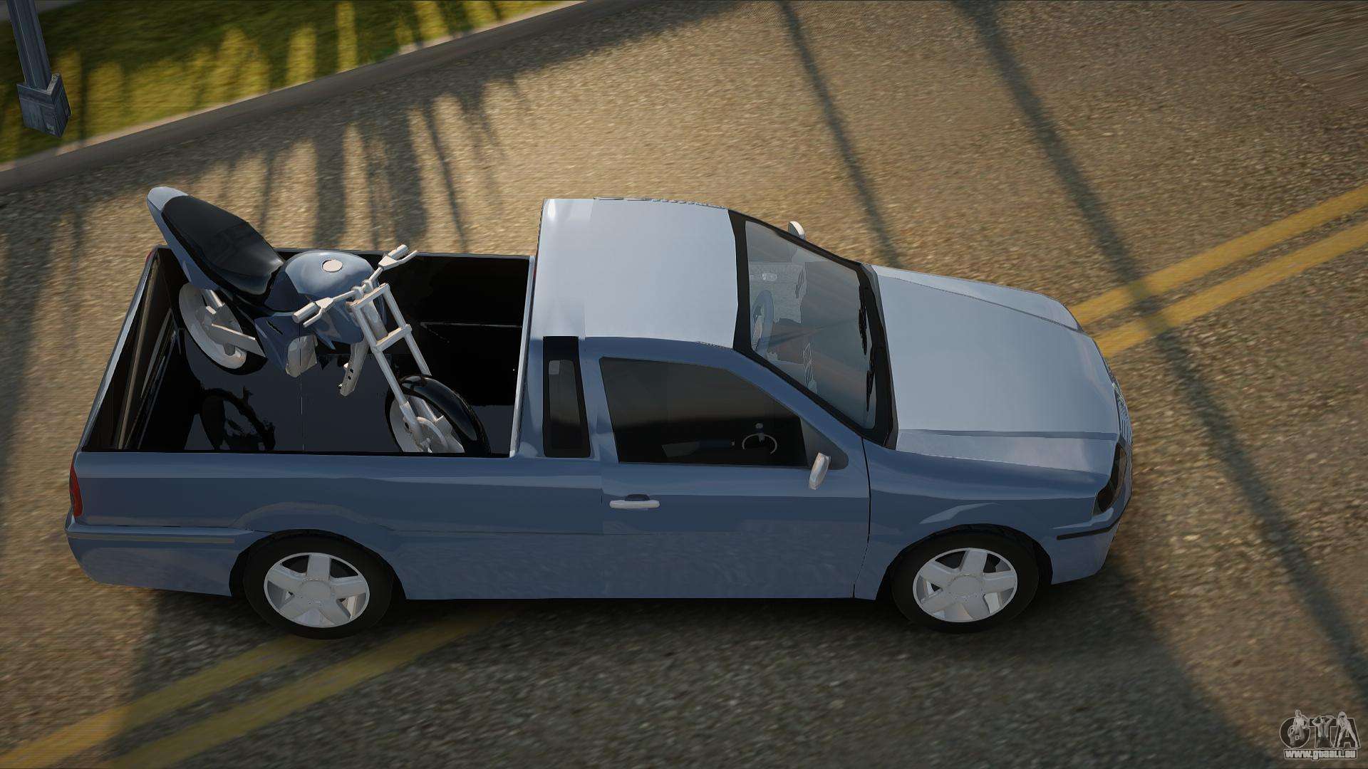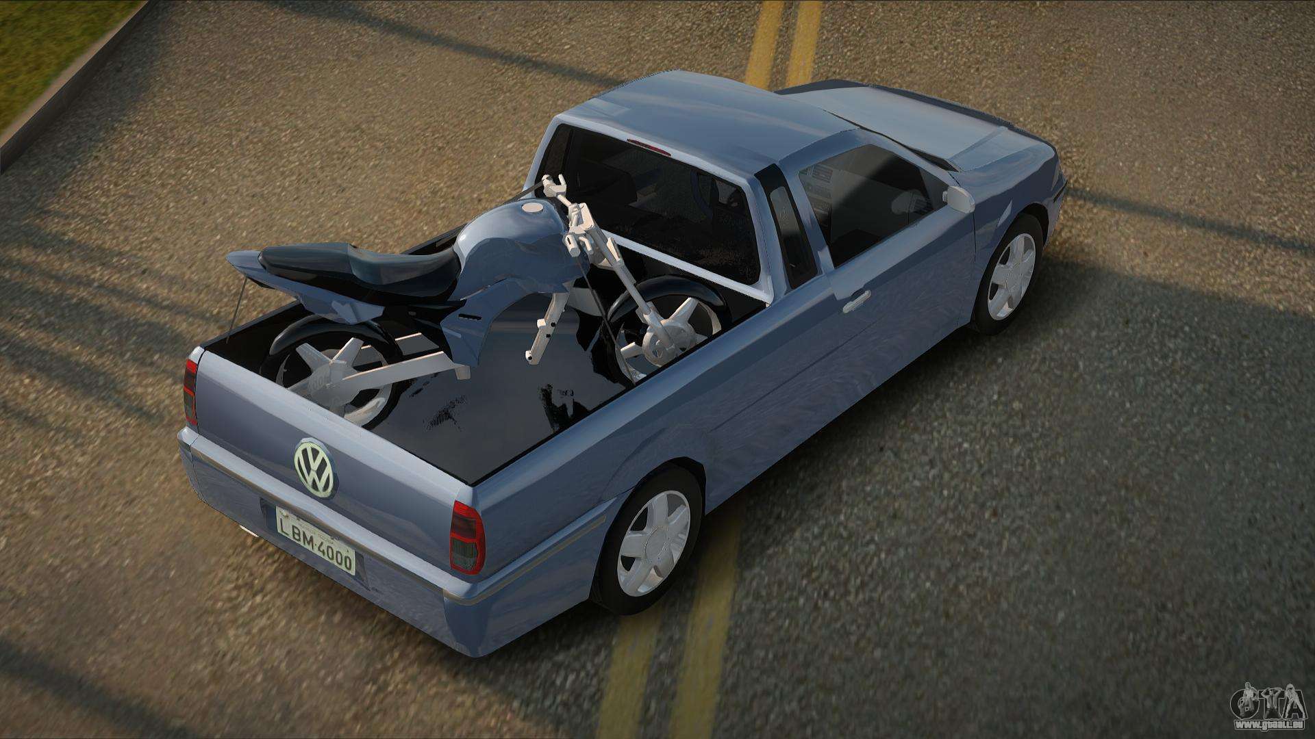 Vous pouvez télécharger gratuitement le mod Volkswagen Saveiro Terlie pour GTA San Andreas en cliquant sur le lien ci-dessous. Installation automatique, par défaut pour remplacer Bobcat, ou avec l’aide de l’installateur, vous pouvez sélectionner n’importe quelle autre voiture standard du jeu.