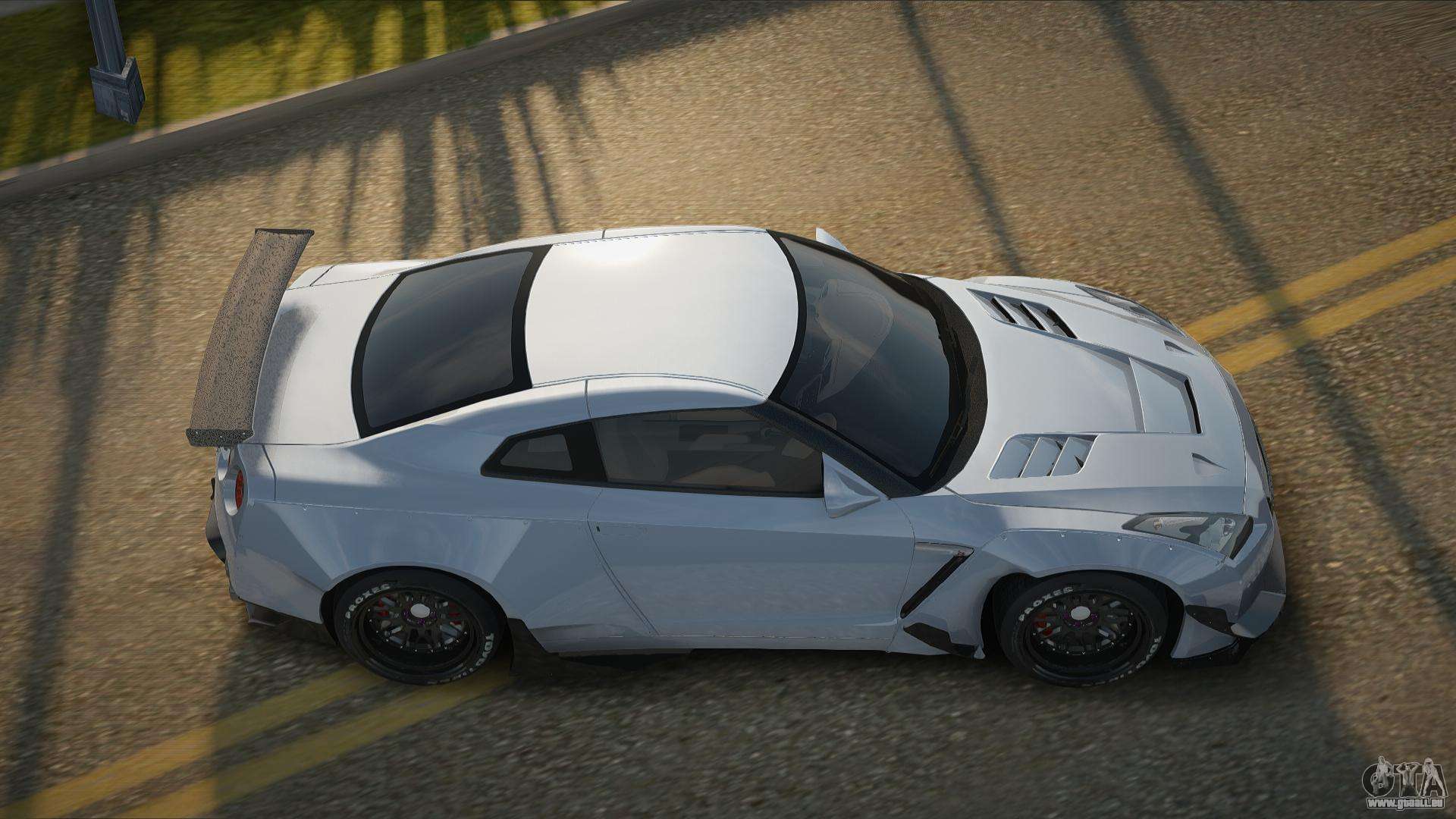 Vous pouvez apprécier tout le charme de la voiture en téléchargeant le mod Nissan GT-R R35 RB pour GTA San Andreas en cliquant sur les liens ci-dessous. Le mod s’installe automatiquement en deux clics, par défaut il remplace Alpha, ou choisit n’importe quel autre véhicule du jeu que vous souhaitez transformer.