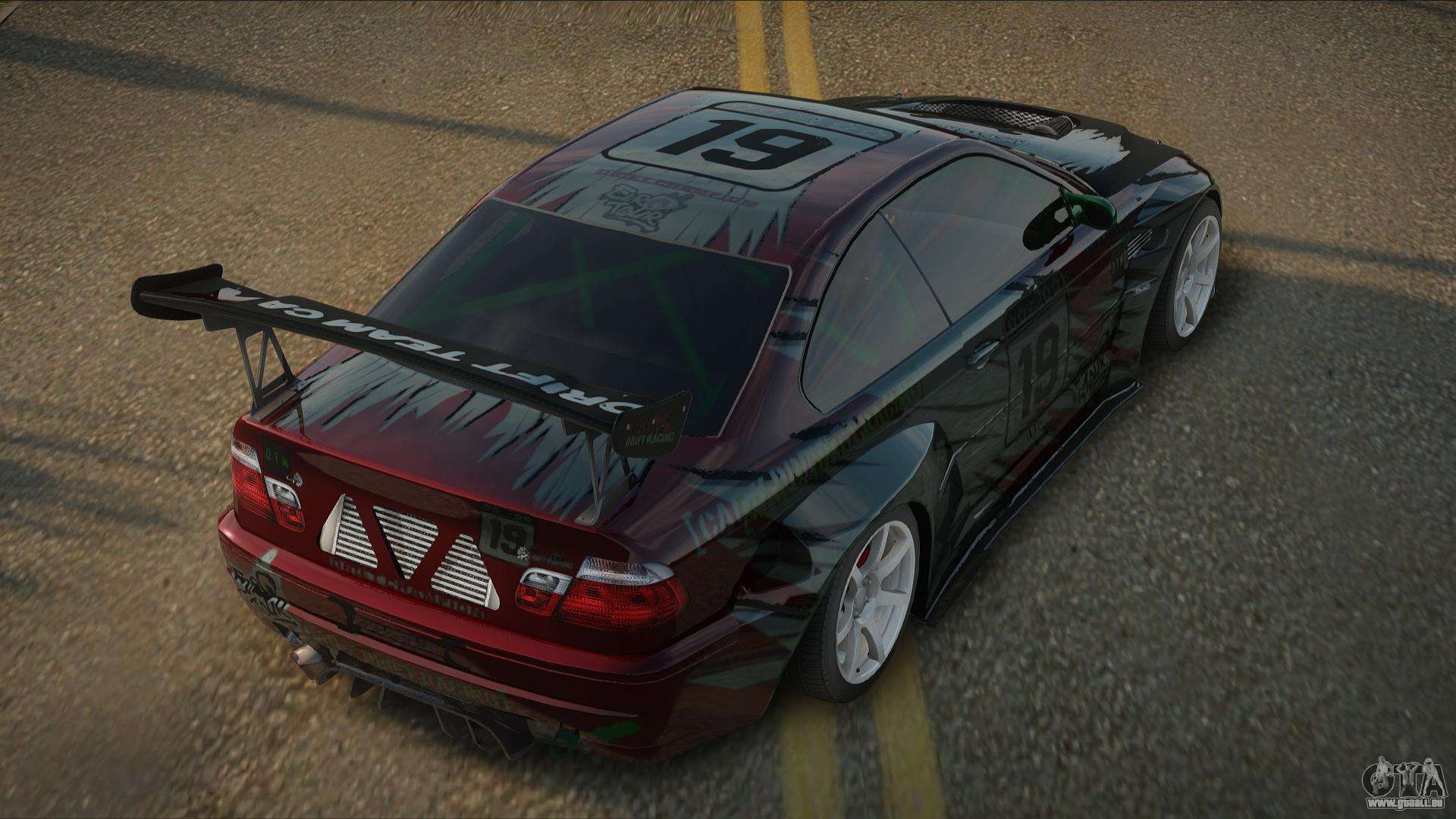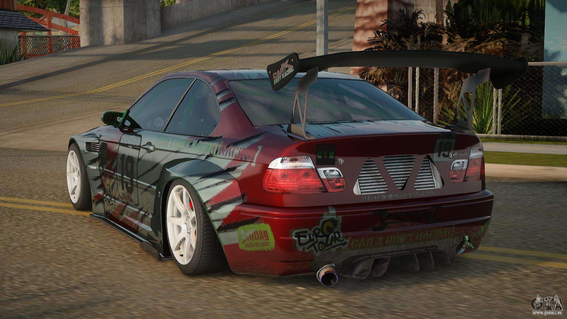 Pour télécharger gratuitement le mod BMW M3 E46 Abissa pour GTA San Andreas, il vous suffit de cliquer sur les liens en bas de la page. Notre installateur automatisé vous aidera à installer le mod de remplacement Previon en deux clics, ou vous pouvez choisir n’importe quel autre véhicule standard dans le jeu.