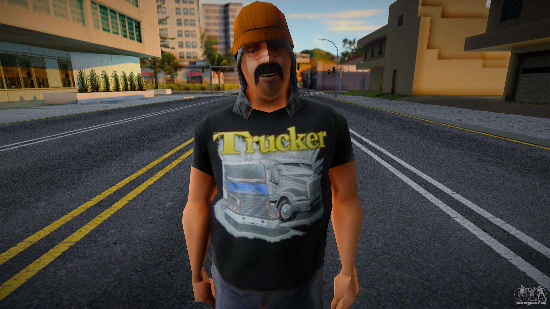 Peau de qualité - Camionneur pour GTA San Andreas. Un bon skin rendra votre jeu plus intéressant et plus beau ! Cette peau a un modèle et des textures de haute qualité, pas d’erreurs et d’autres bugs. Squelette mobile et os des mains. Profitez du téléchargement.