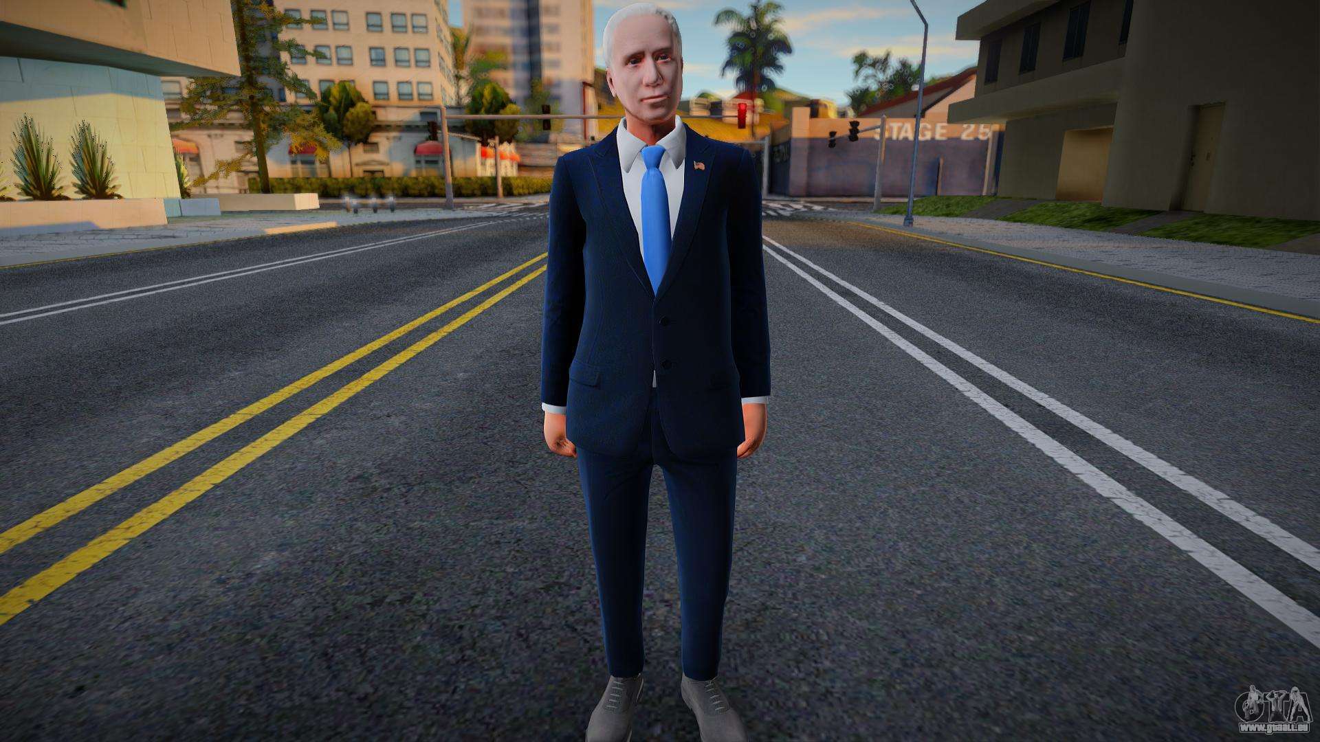 Pas mal - Joe Biden pour GTA San Andreas. Rendez votre jeu plus intéressant en téléchargeant ce magnifique skin pour celui-ci ! Il n’y a pas d’erreurs ni de bugs. Bon téléchargement.